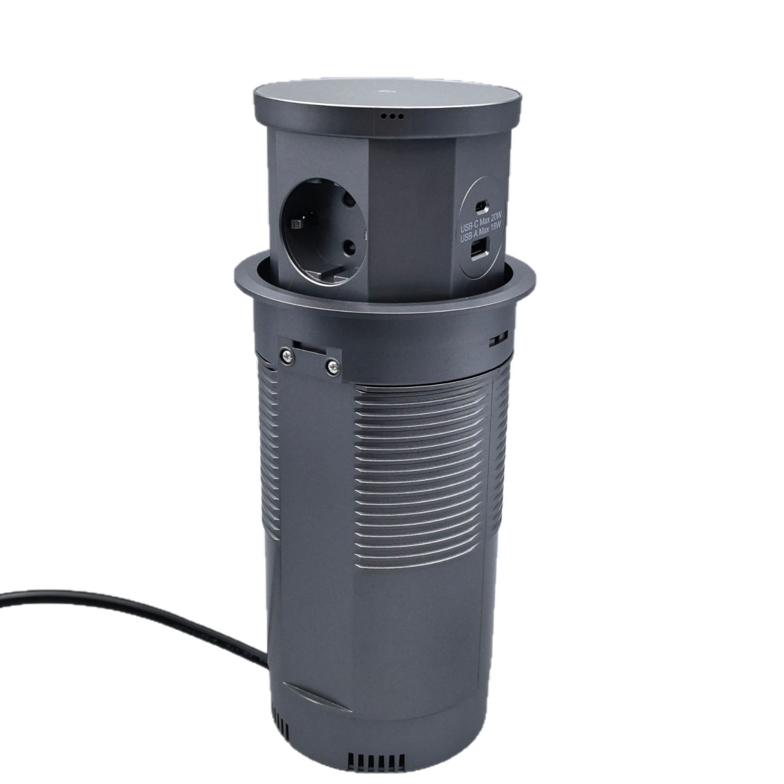 跨境专供按压欧规插座气动升降嵌入式插座桌面隐藏中岛台办公桌插