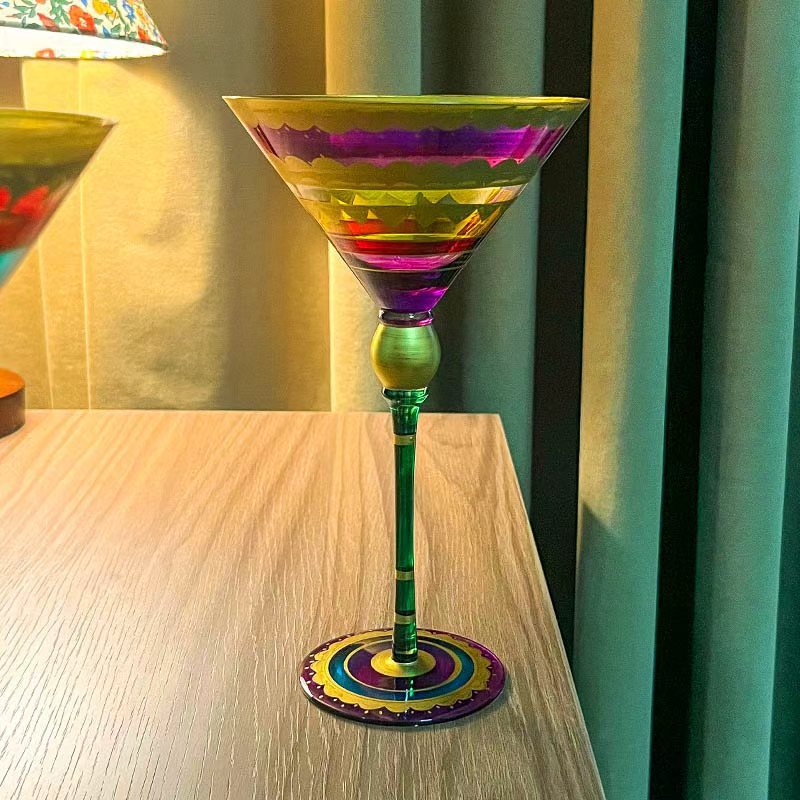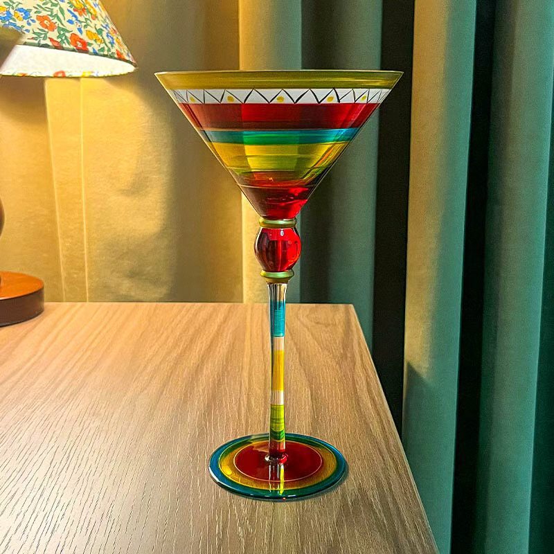 高颜值杯家用杯子玛格丽特手绘鸡尾酒杯高脚杯水晶玻璃杯创意酒杯