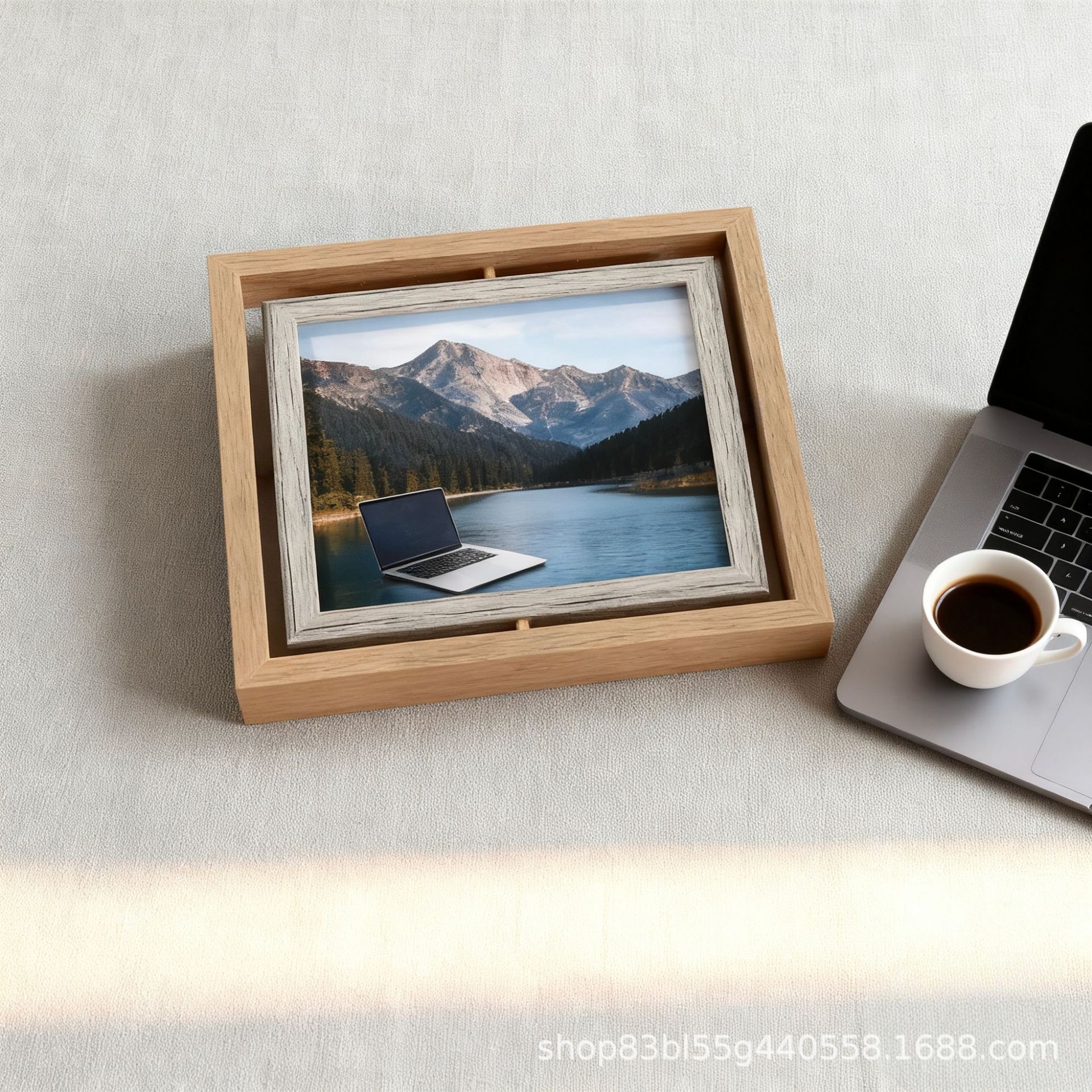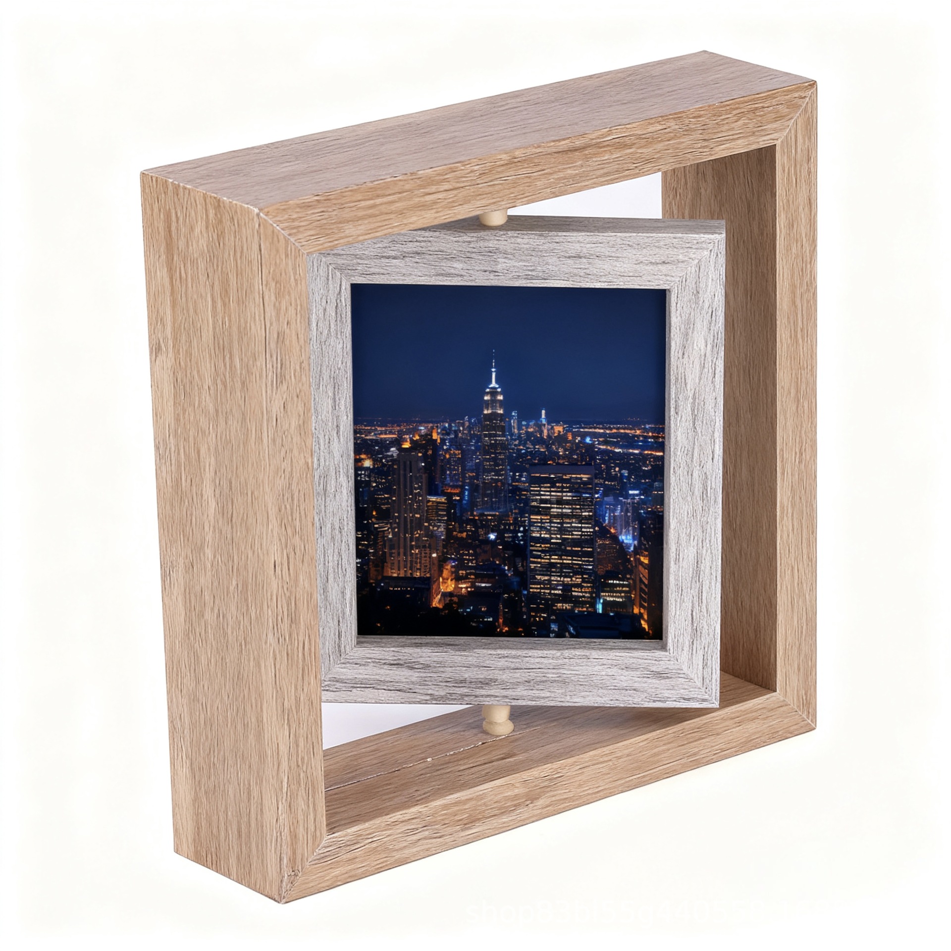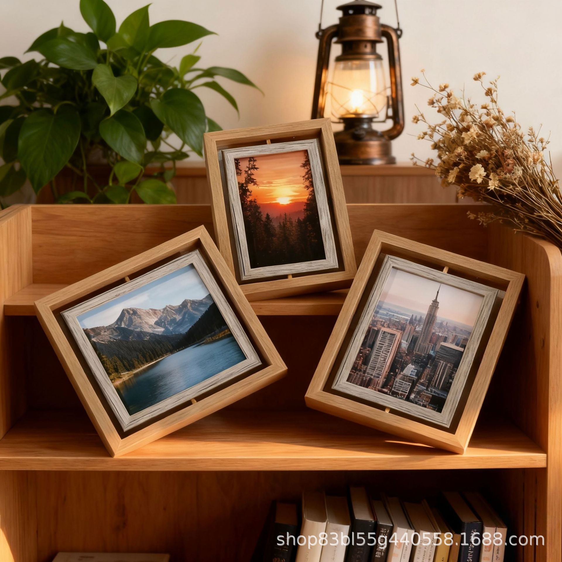 创意木质双面旋转相框情侣4寸6寸立体桌面摆台北欧风画框厂家批发