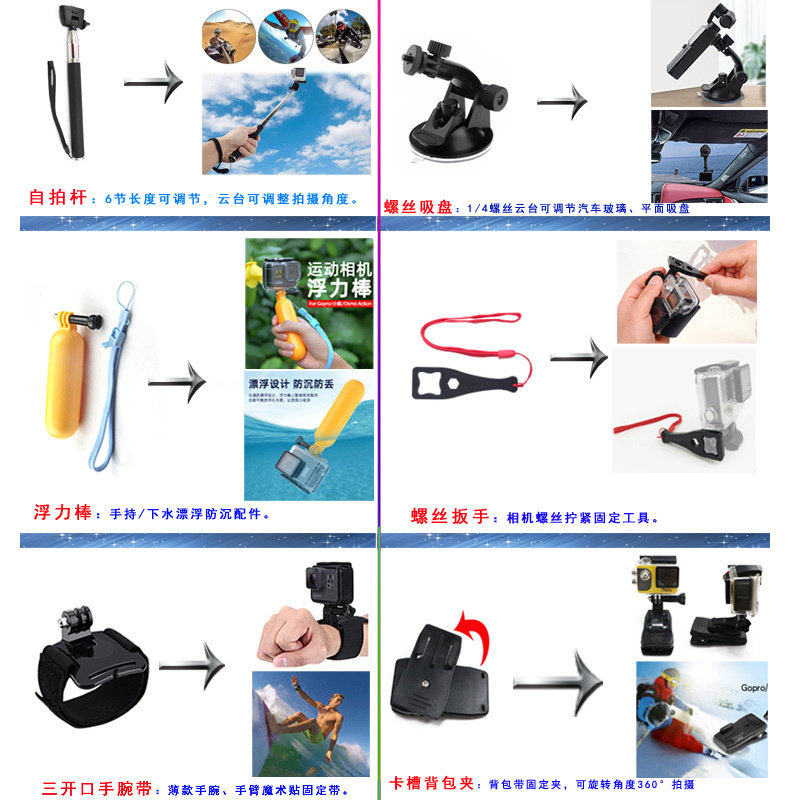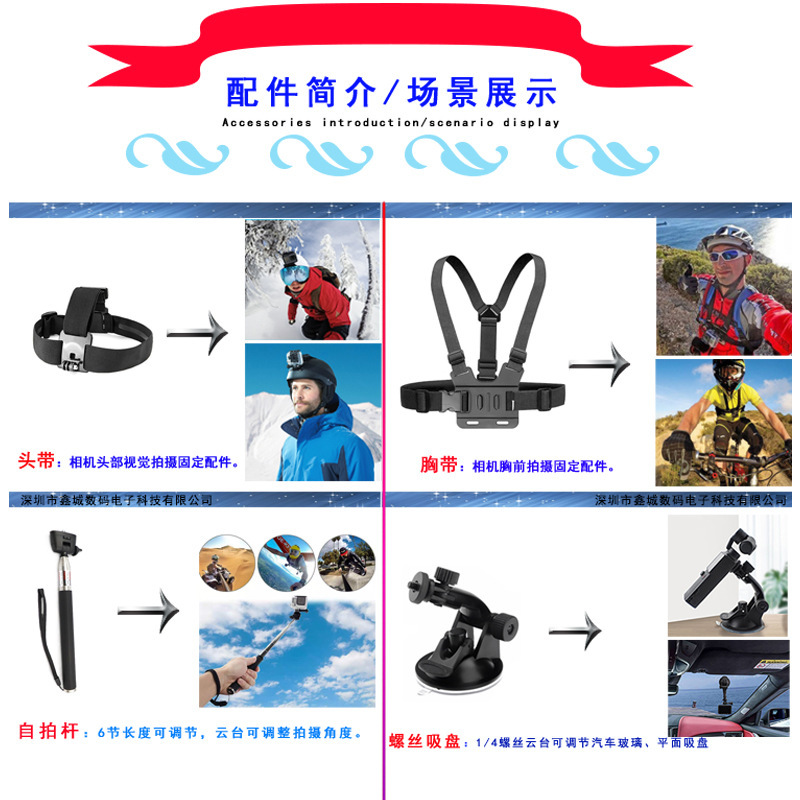 主营产品:运动相机手机配件,Gopro配件,手机吸盘支架,车载支架、