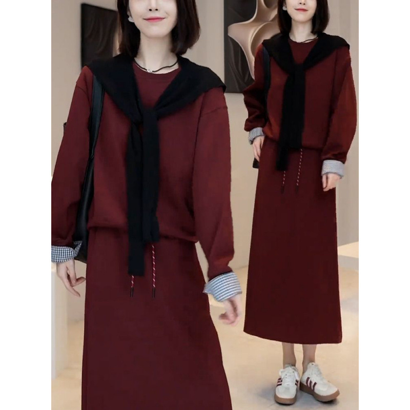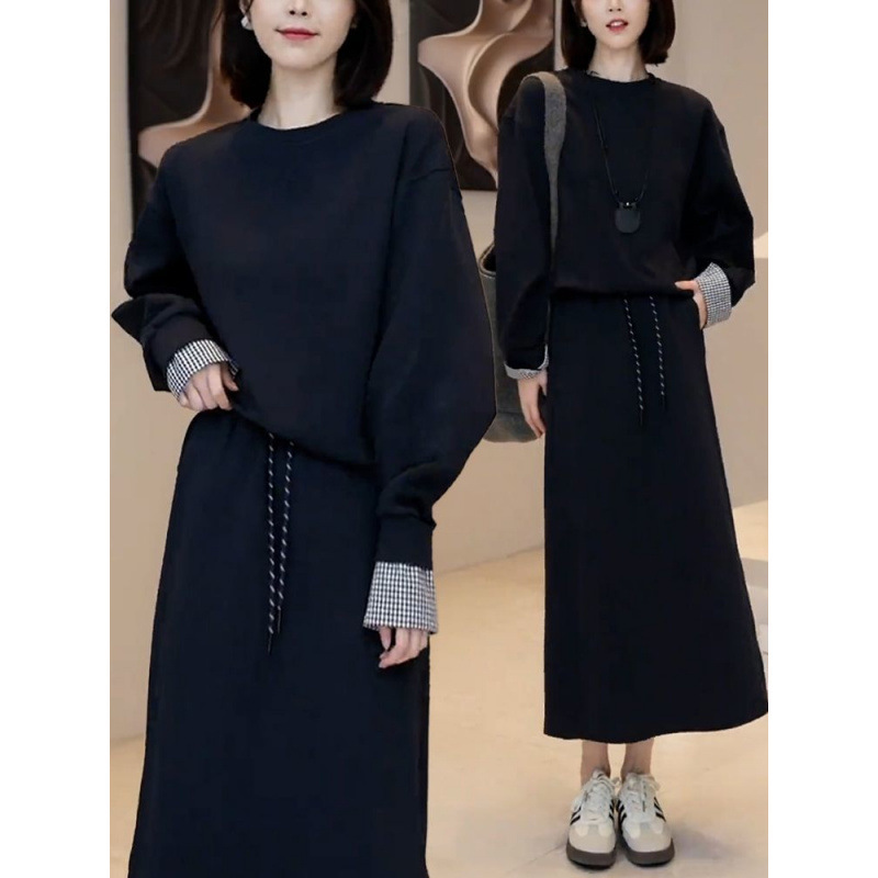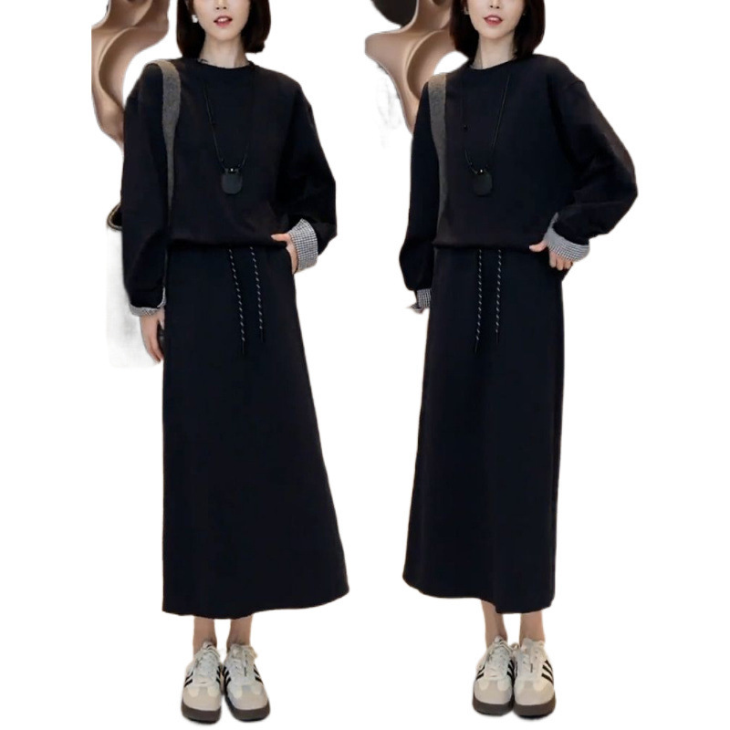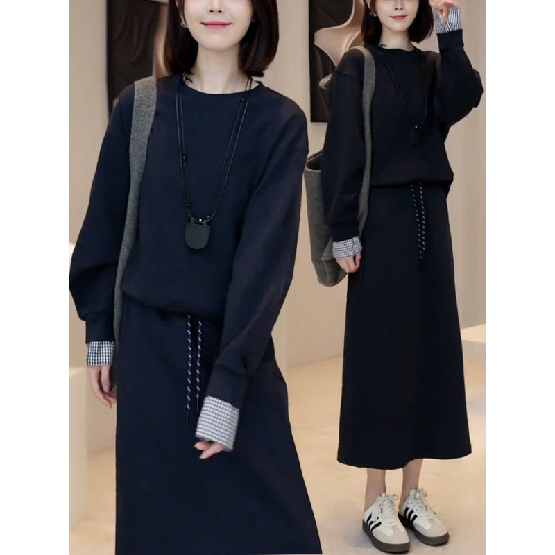 高含棉时尚套装女年春秋季新款小个子假两件卫衣半身裙两件套