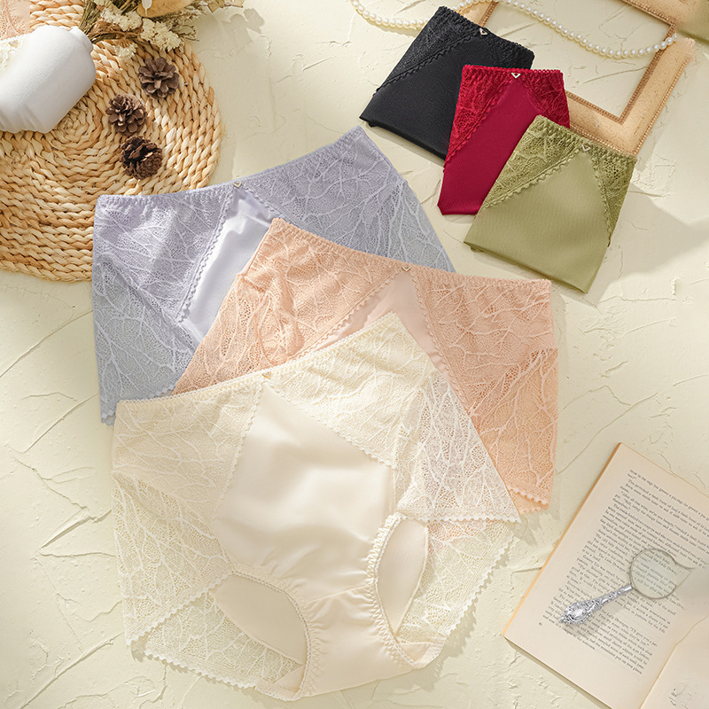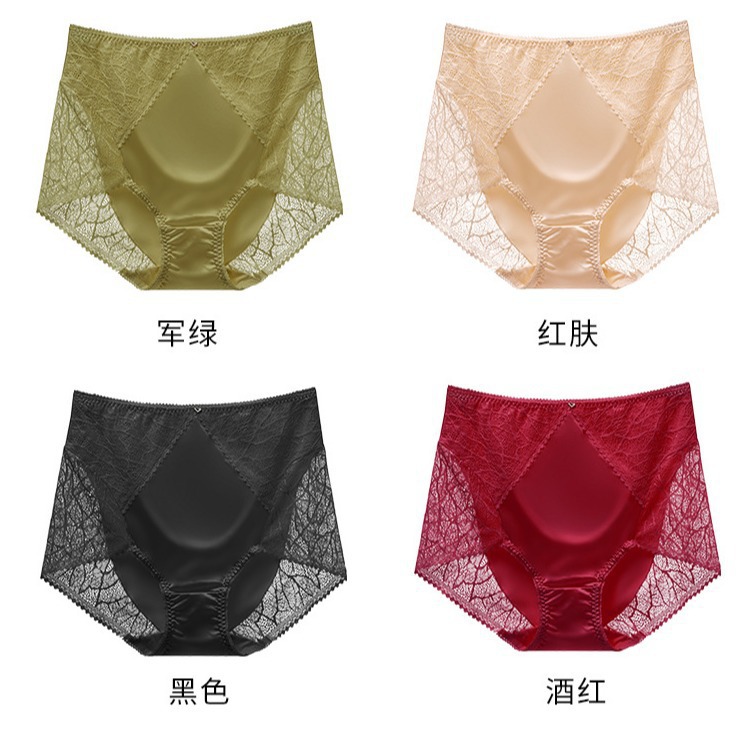 缎面纯棉蕾丝高腰内裤女大码内裤性感女里裆女士三角裤性感内裤