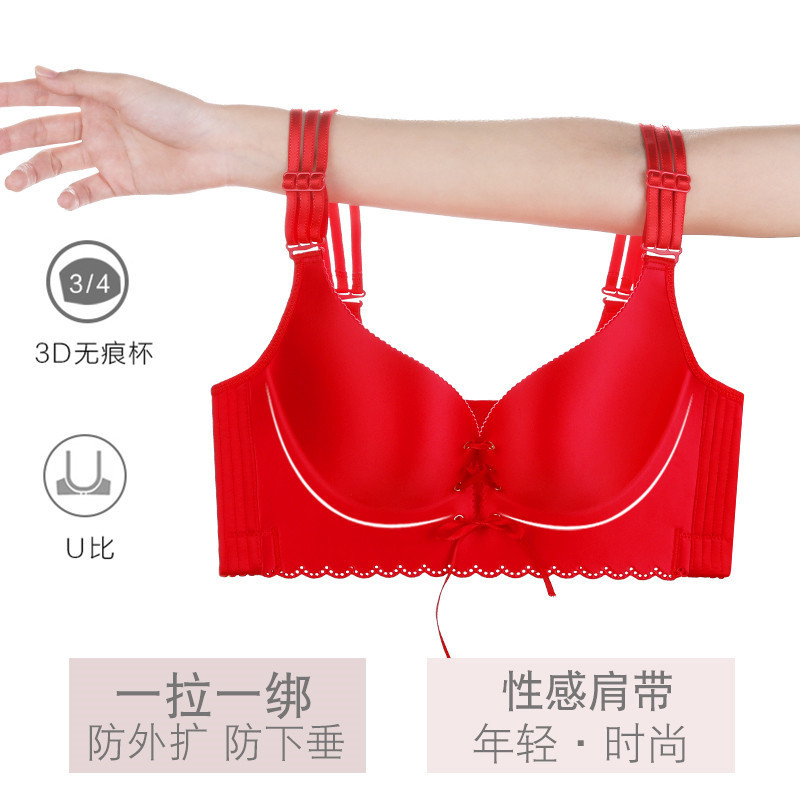 新款拉绳大码薄内衣聚拢调整型绑带美背无痕无钢圈性感文胸收副乳