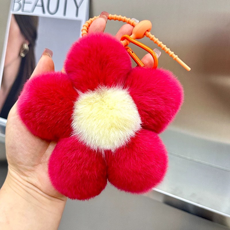【可爱花朵】真獭兔毛花朵汽车钥匙扣挂件网红ins毛绒花花包包挂