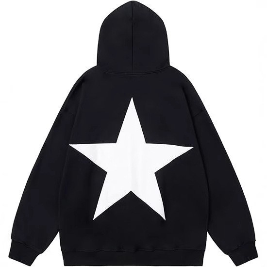 跨境亚马逊春秋款2025新暗黑风嘻哈哥特原宿Y2K五角星印花连帽衫
