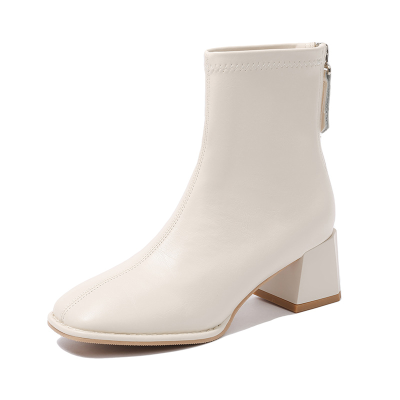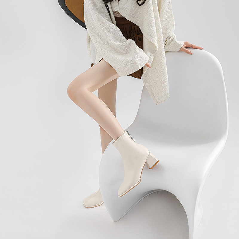 尚案 经典不过时粗跟方头时尚短靴秋冬标配气质通勤后拉链高跟靴