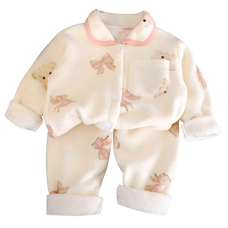 儿童睡衣套装新款男童加绒加厚女童法兰绒保暖家居服开衫童装批发
