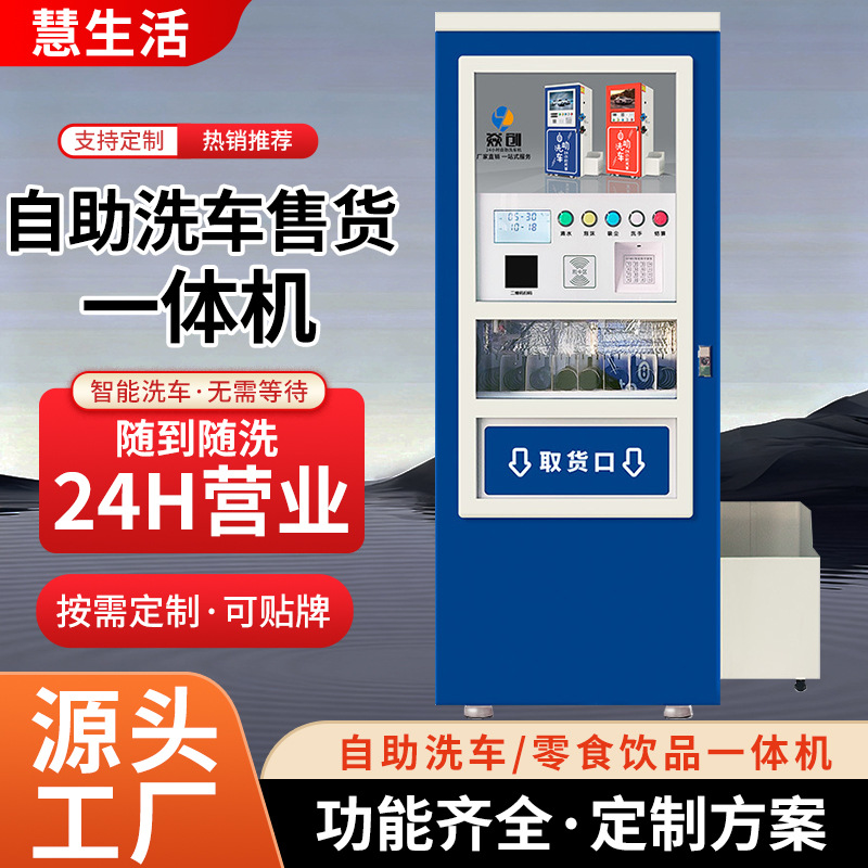 智能24小时清洁高压洗车机洗售一体洗车机无人自助扫码售货洗车机