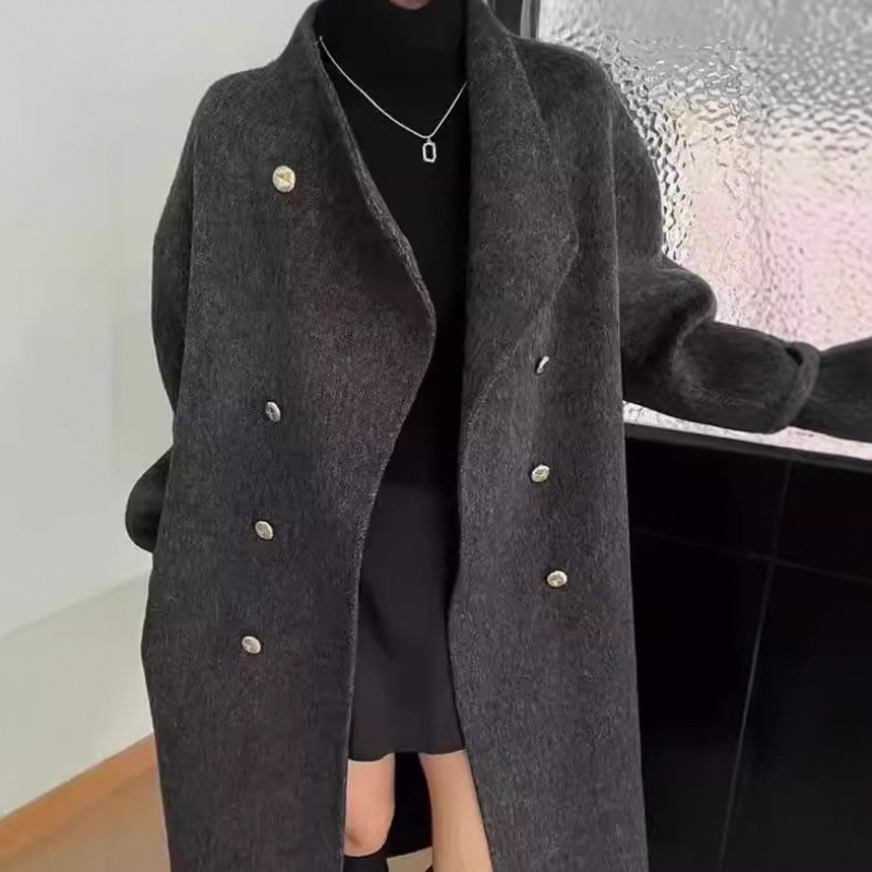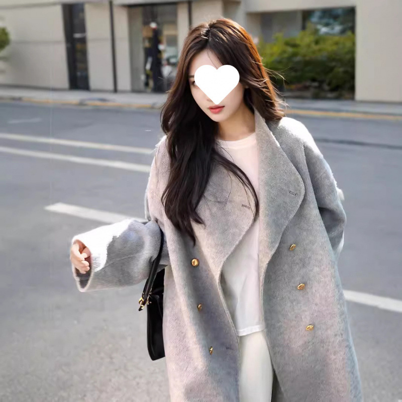 高级感灰色大衣女秋冬加厚宽松新款羊毛呢子外套