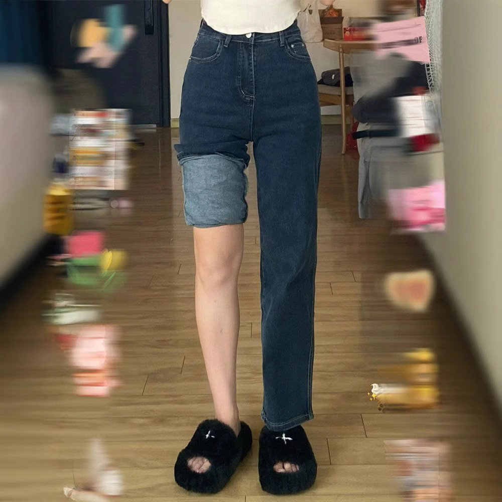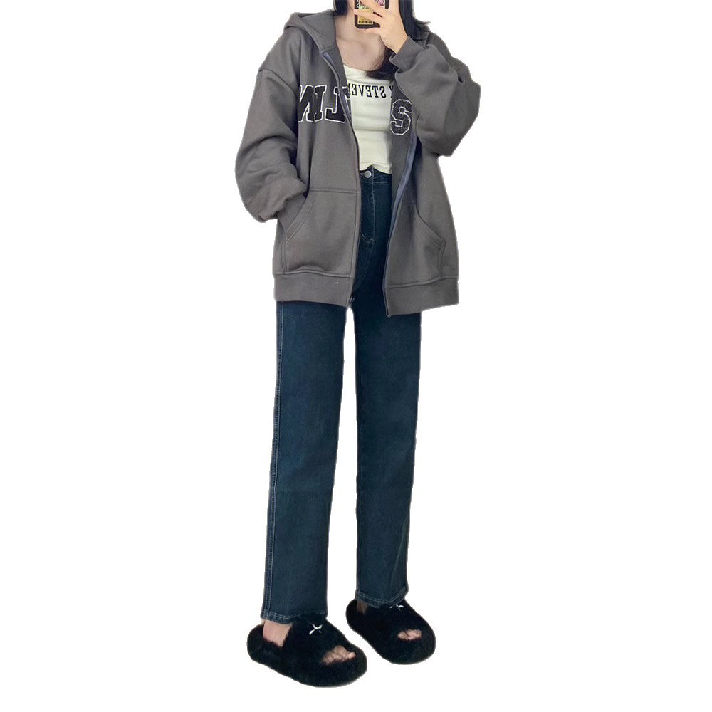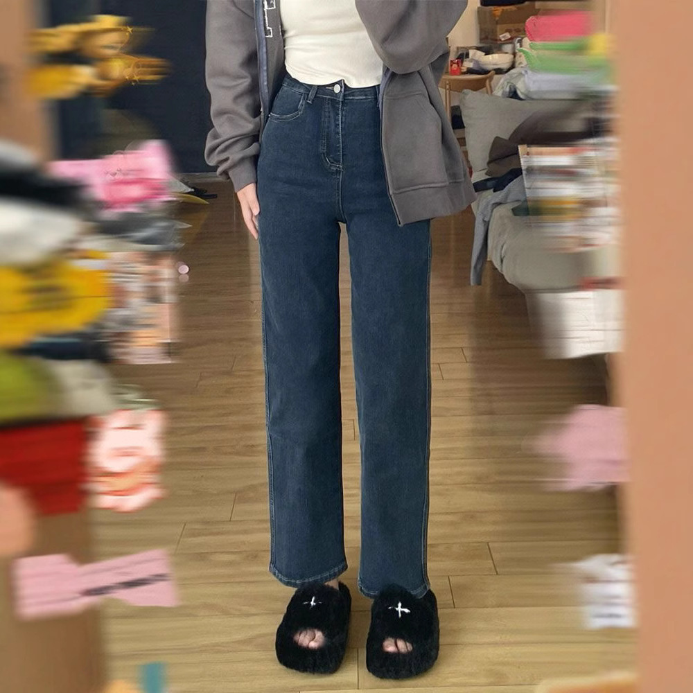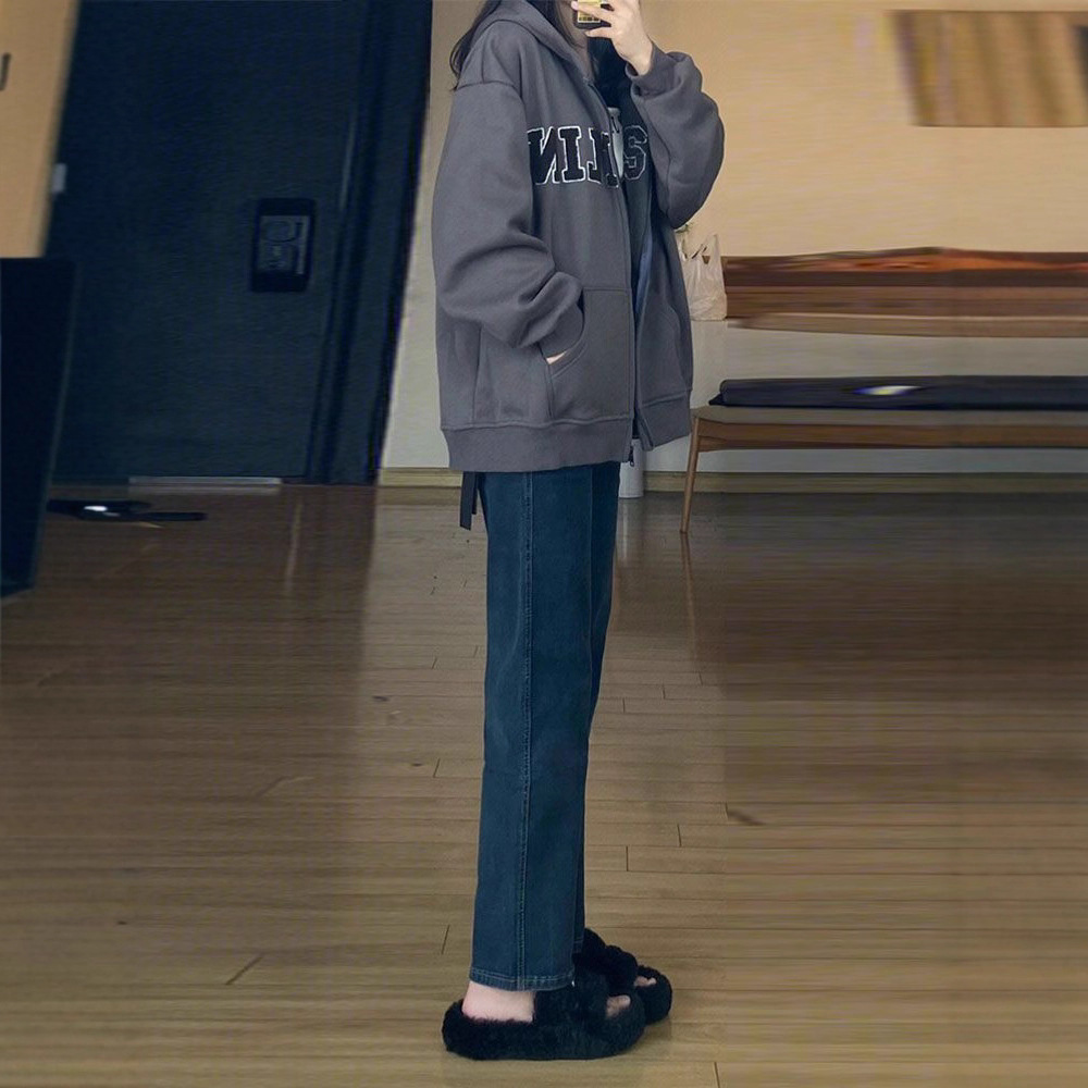 蓝灰色牛仔裤宽松直筒女春秋季新款小个子高腰显瘦梨型身材裤子潮