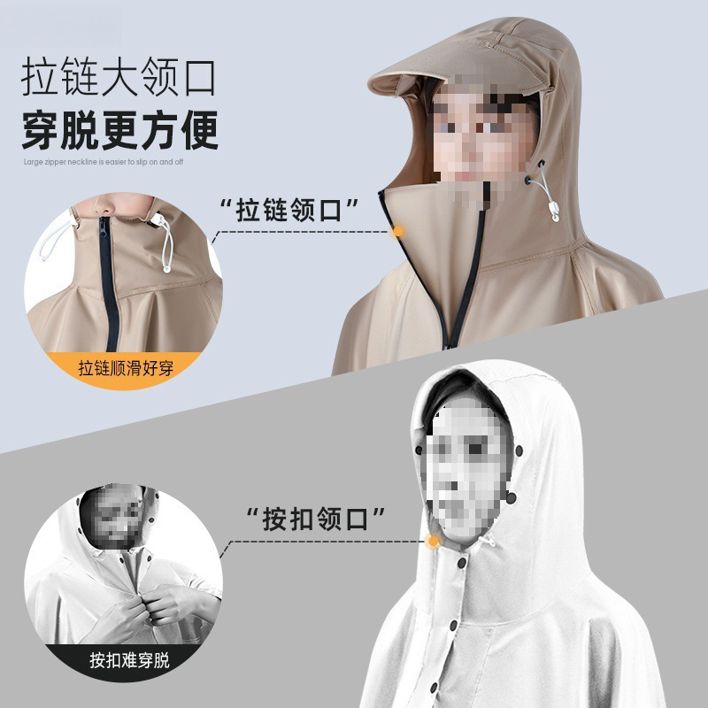 颜色 | 暗夜黑【升级版型+加大遮脚+拉链高领口+穿脱更方便】 | 颜色 | 卡其色—尺码不同【松紧领口+防雨手套+全身防雨】 |