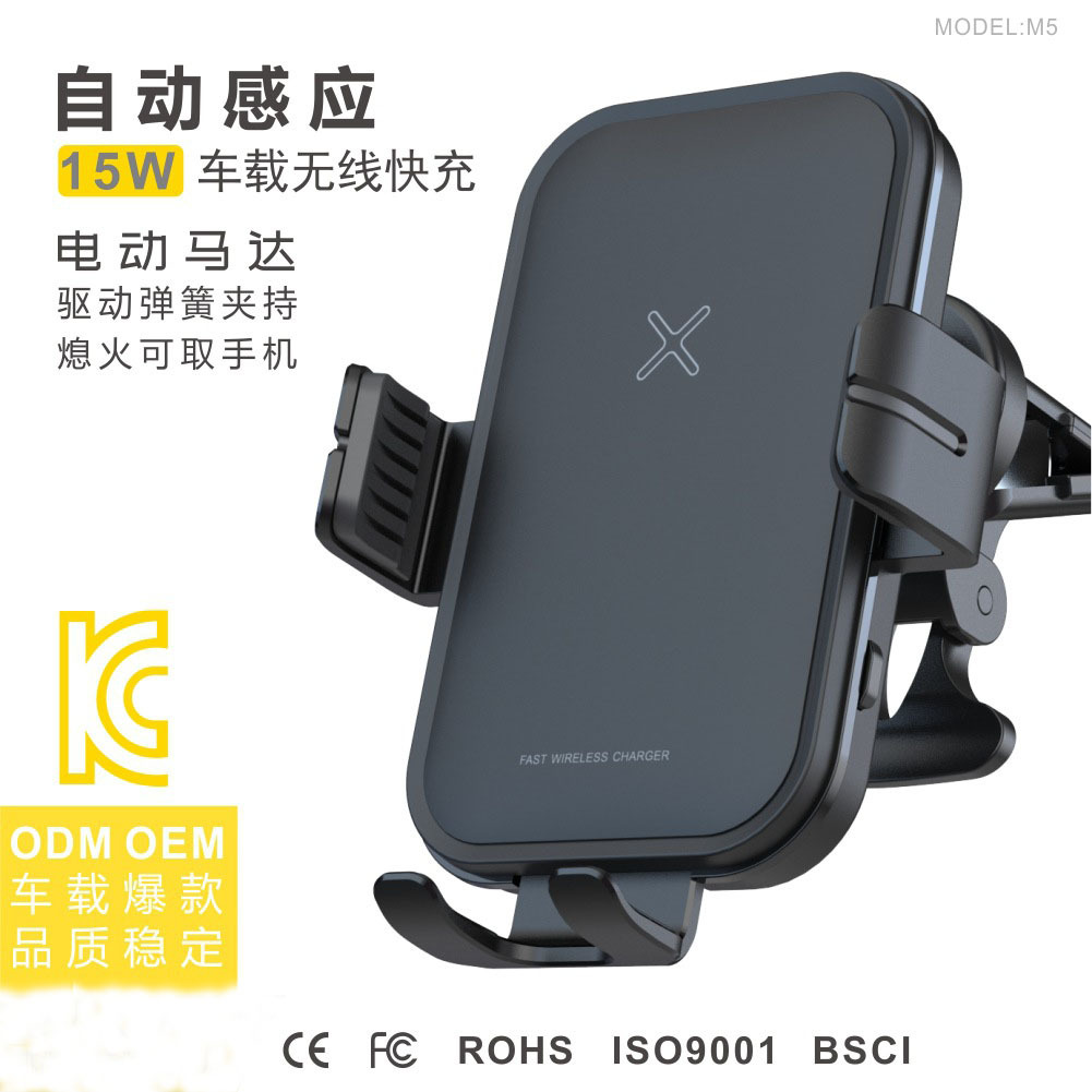 出风口小巧15W快充 自动感应FOD车载无线充电器 智能车载手机支架