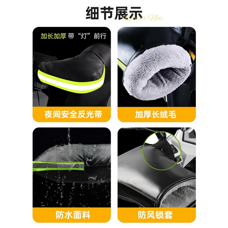颜色 | 【加厚PU皮】小口摩托车加长把套 四封口+灰色反光条 | 颜色 | 【加厚PU皮】小口摩托车加长 四封口+反光条+防水盖 |
