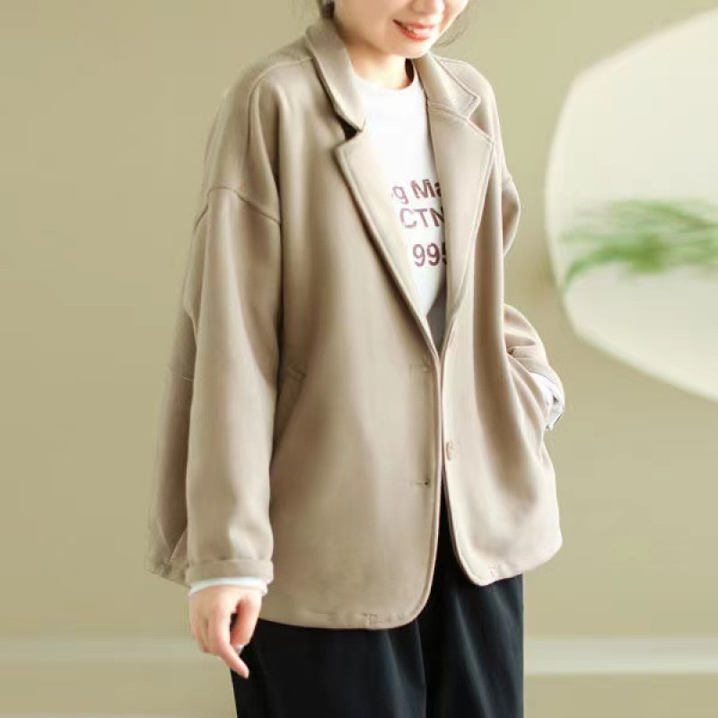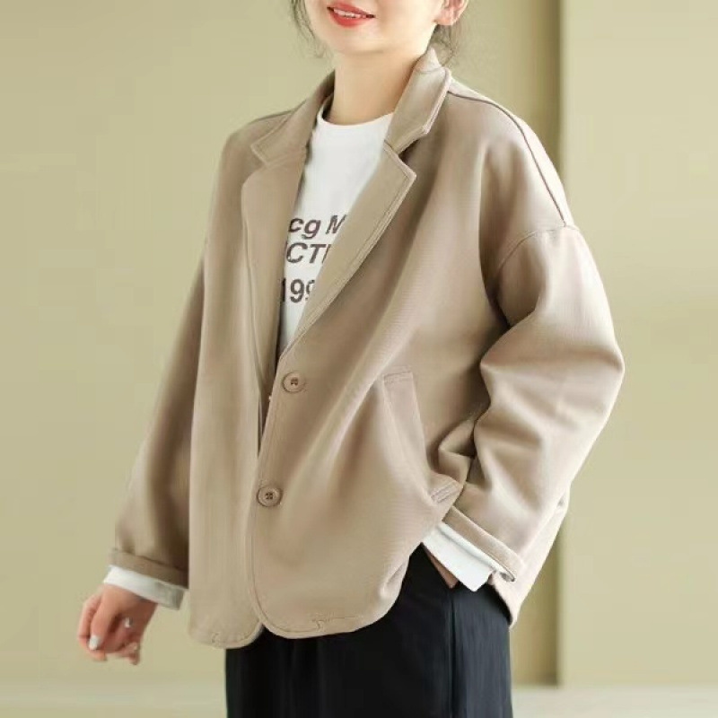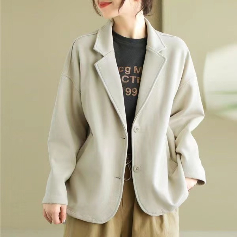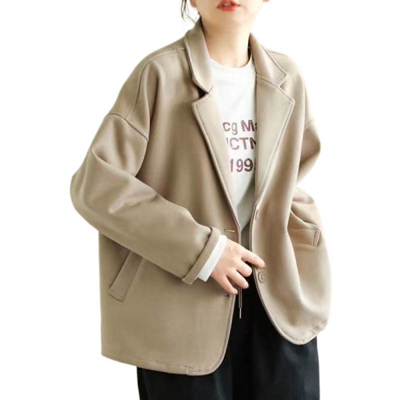 春季新款纯色简约针织弹力通勤百搭宽松遮肉长袖休闲西装外套