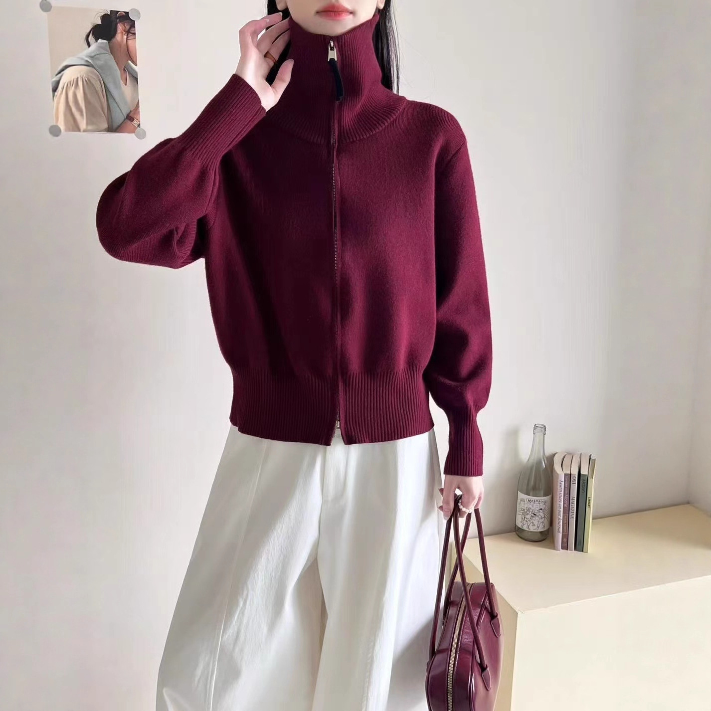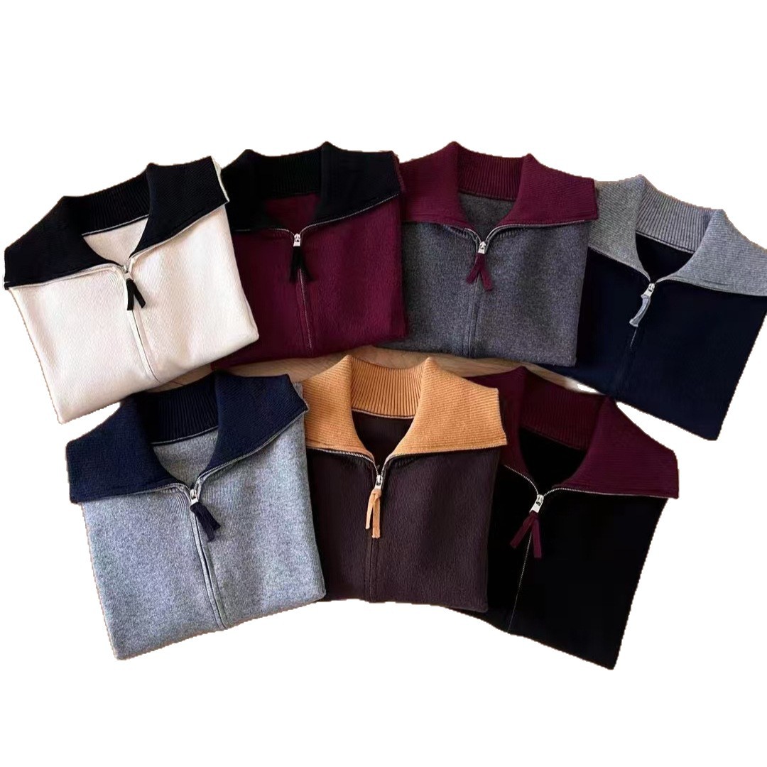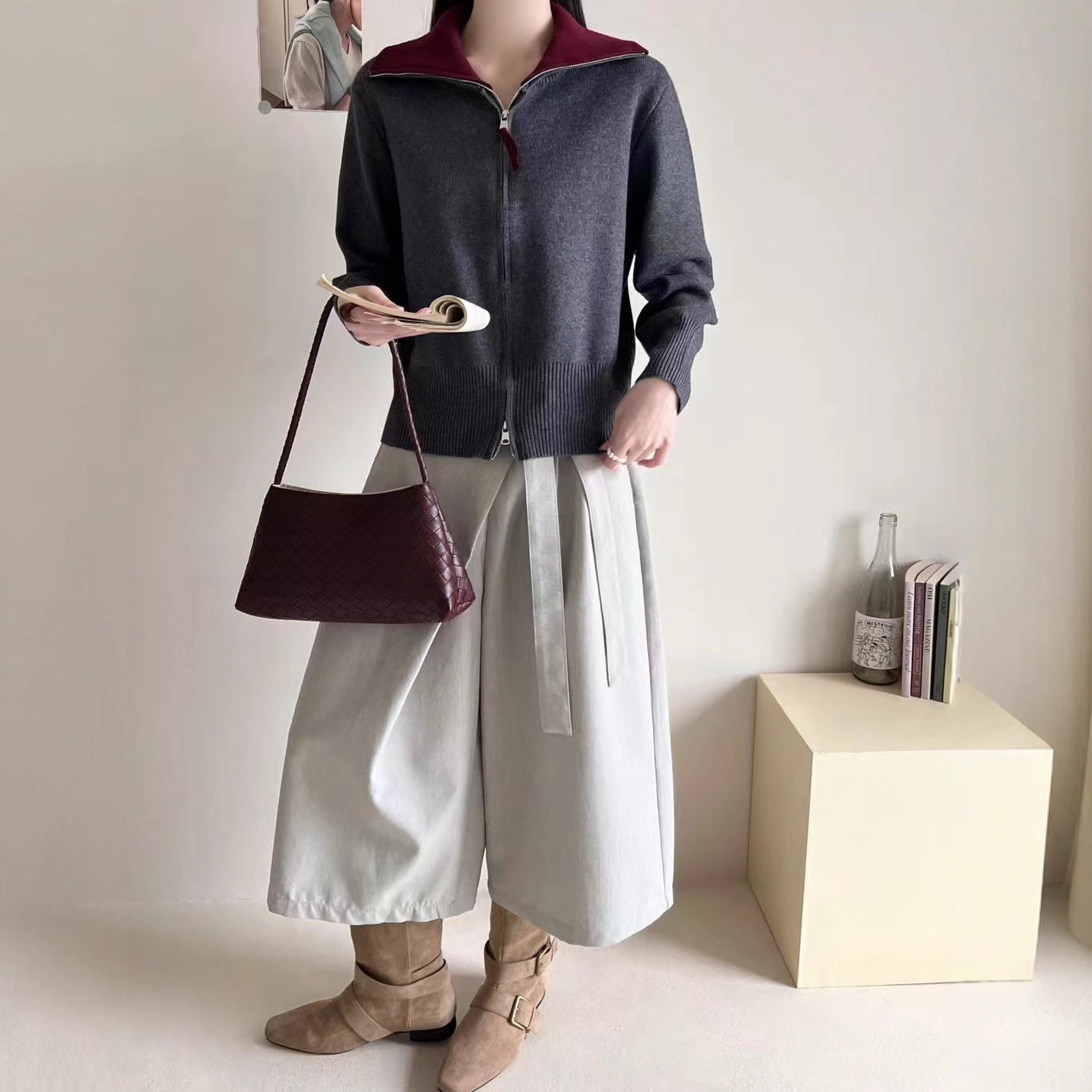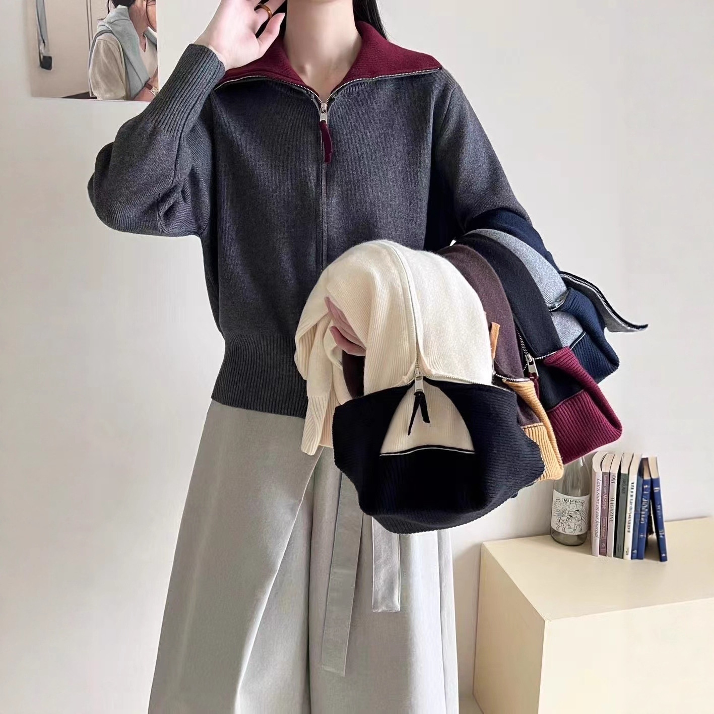 2025秋季新款撞色双拉链针织毛衣新款时尚设计感拼色领女外套上衣