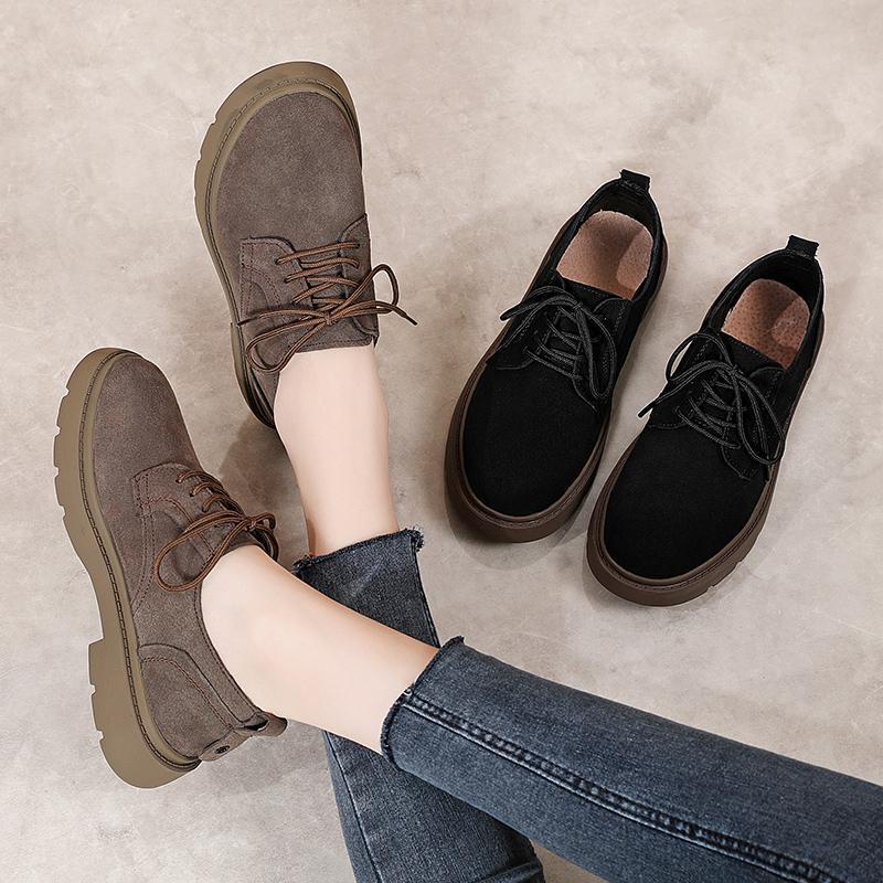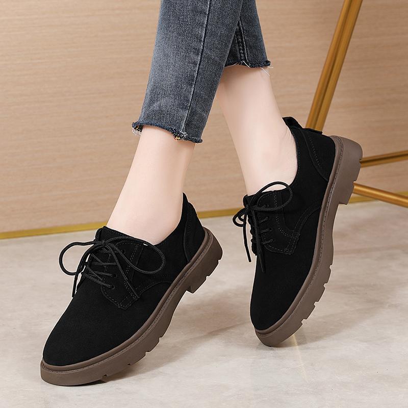 新款跨境批发休闲时尚爆款女鞋反绒皮工装系带单鞋