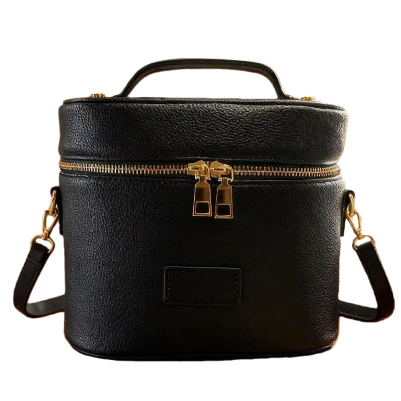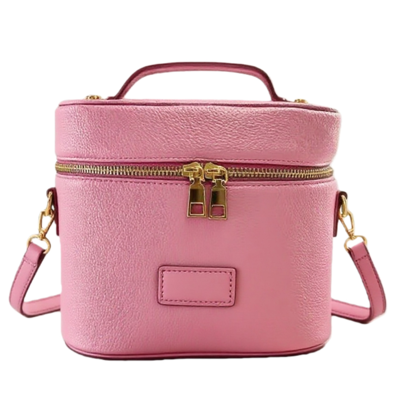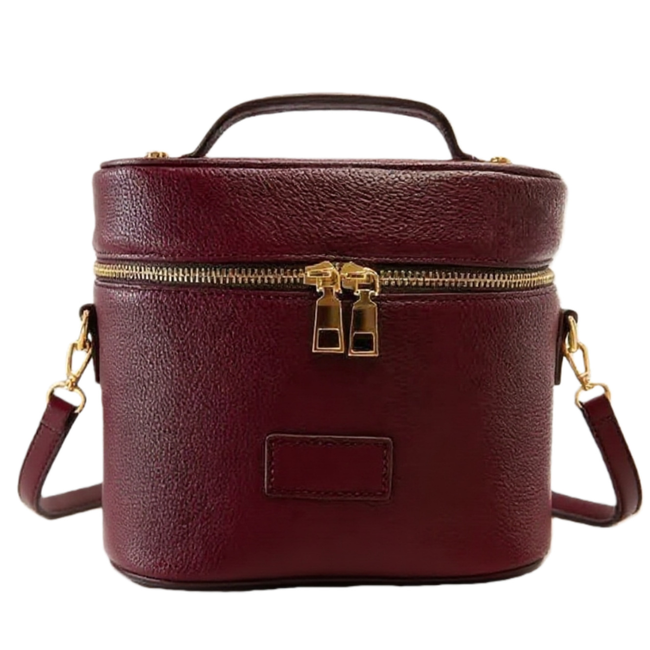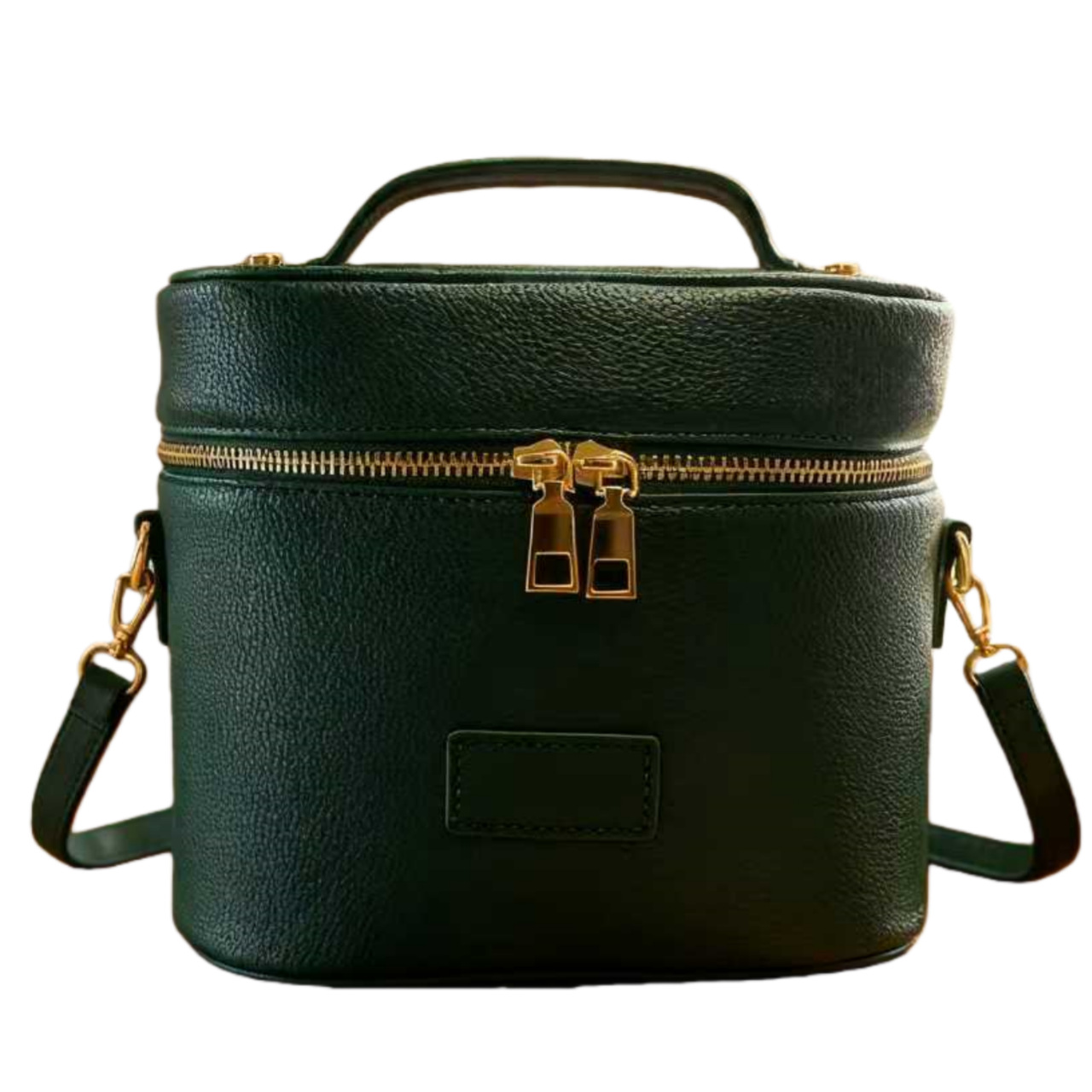 水桶包2025年新款简约便携式带肩带手提大容量PU皮旅行分区化妆包