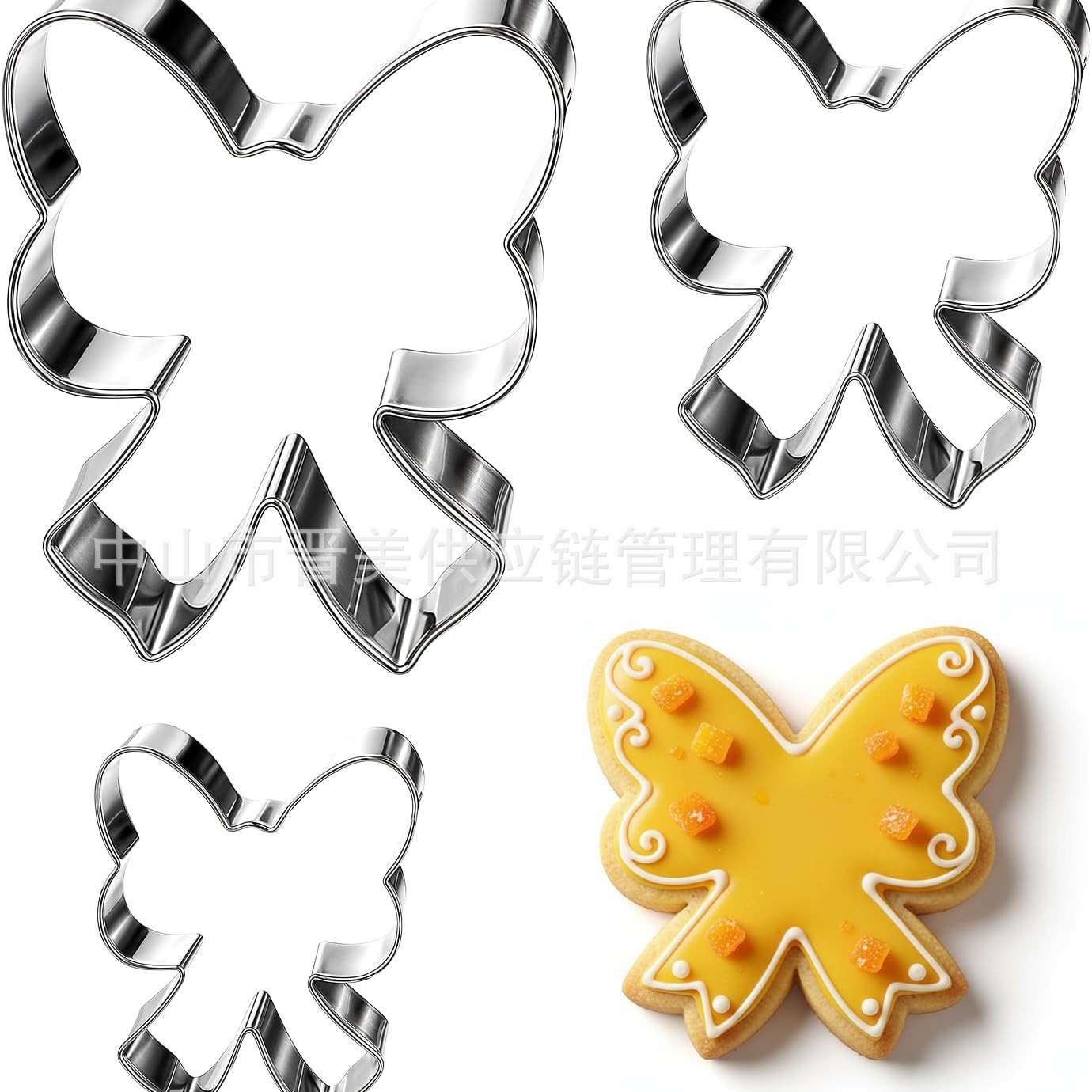 3件蝴蝶结套装不锈钢饼干模具公主系列蕾丝按压式烘焙工具diy跨境