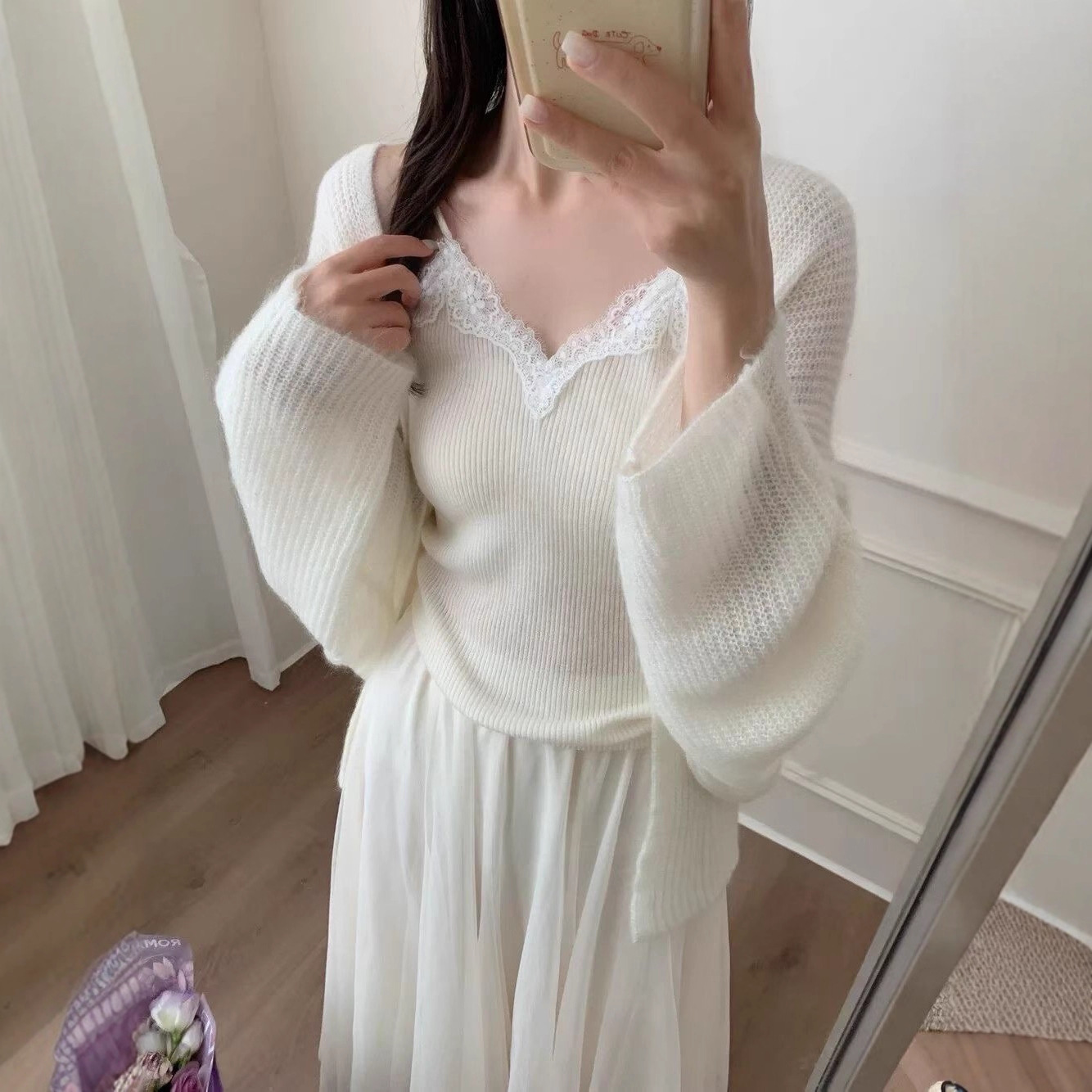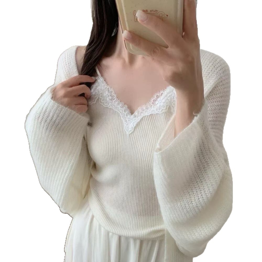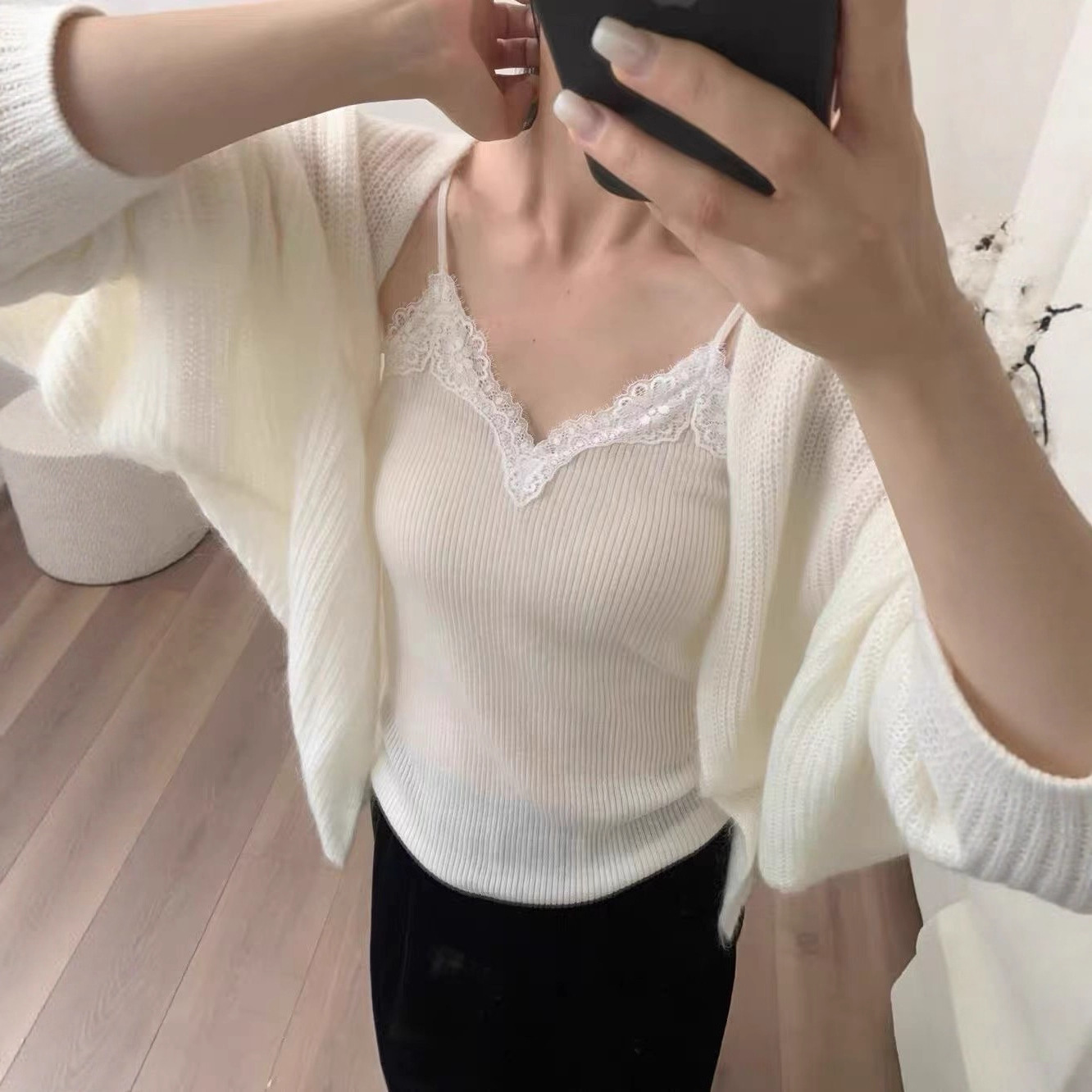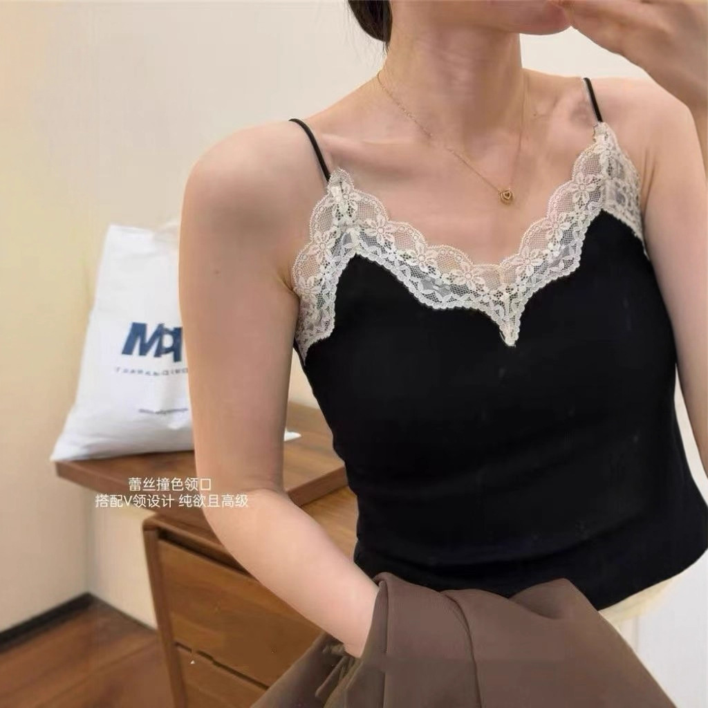 新款睫毛吊带背心蕾丝纯欲性感花边全羊毛打底外穿内搭抹胸美背女