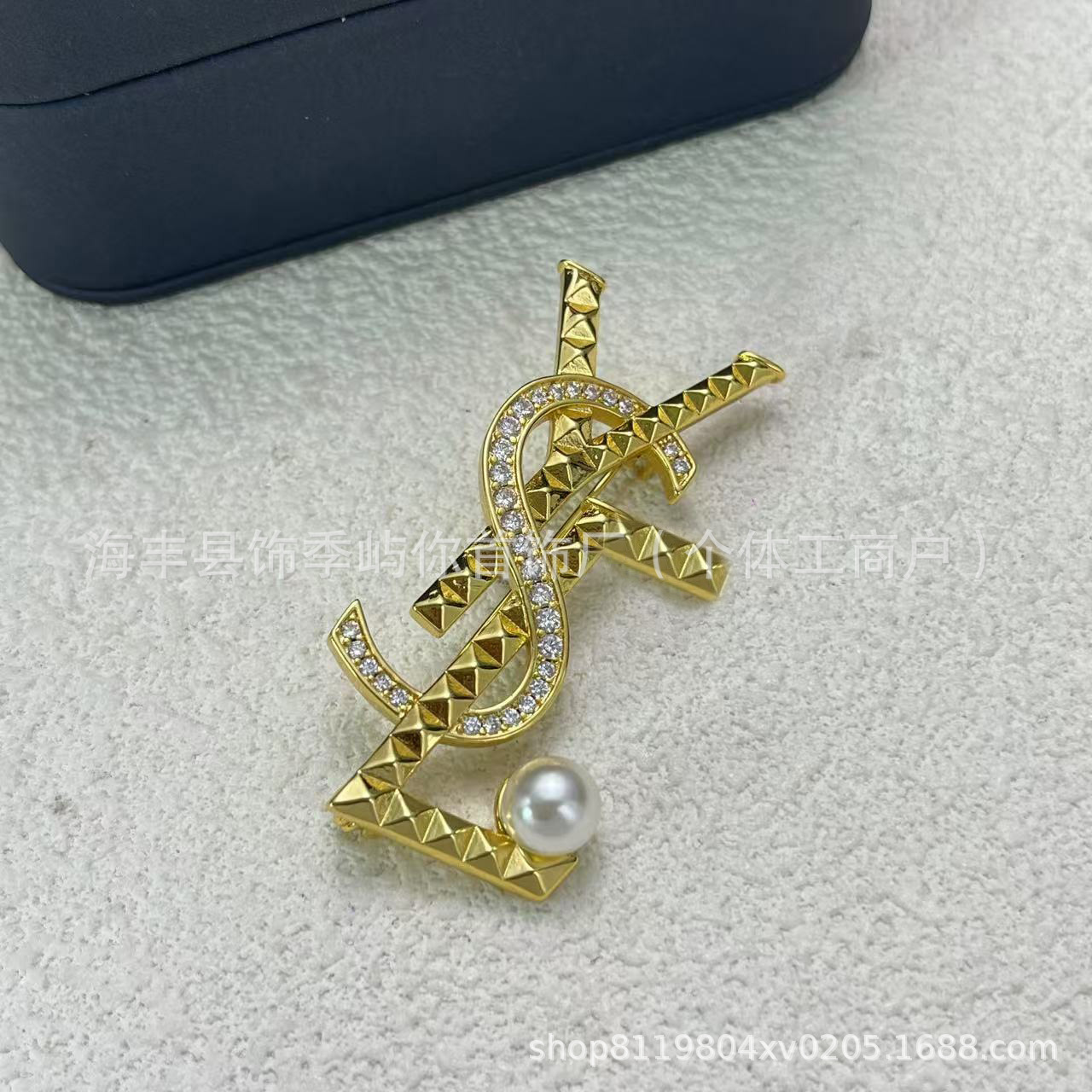 圣家2025新款胸针Y家字母别针女杨树林复古胸饰黄铜饰品批发