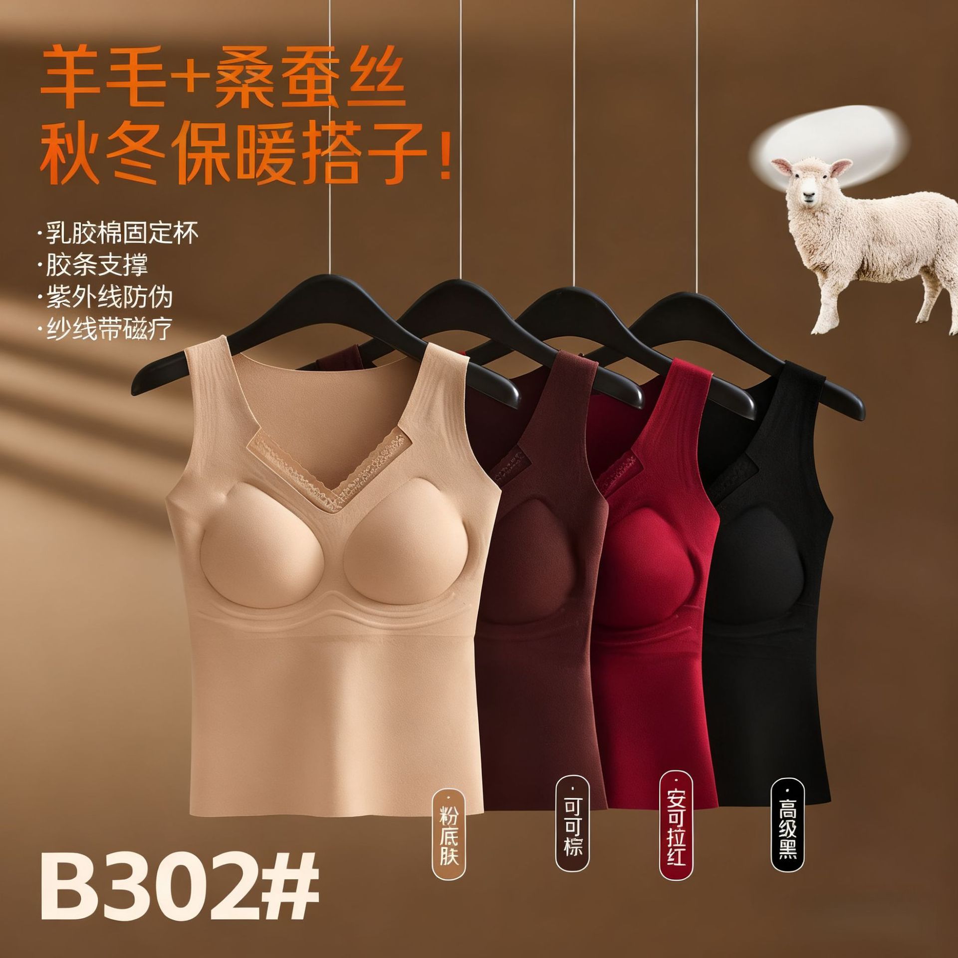 直播爆款保暖背心女羊毛蚕丝内衣打底衫发热上衣无痕带胸垫内衣