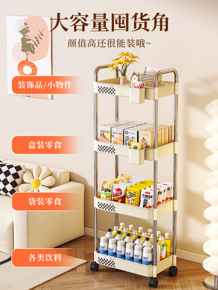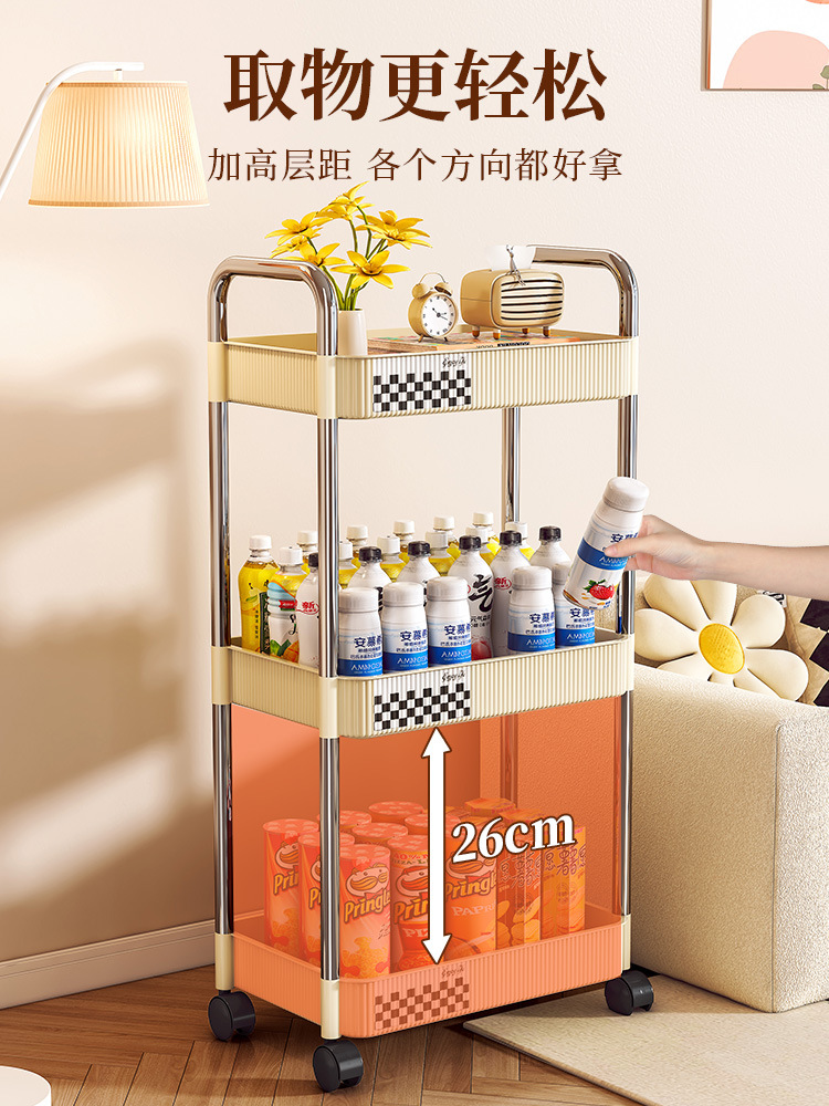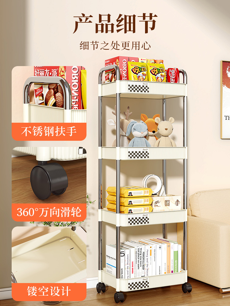 小推车置物架卧室带轮收纳架多层客厅移动落地简易玩具零食收纳架