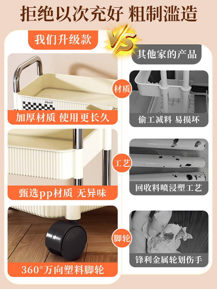 颜色 | 2层奶油白小推车 材质/无异味 | | 颜色 | 3层奶油白小推车 材质/无异味 |