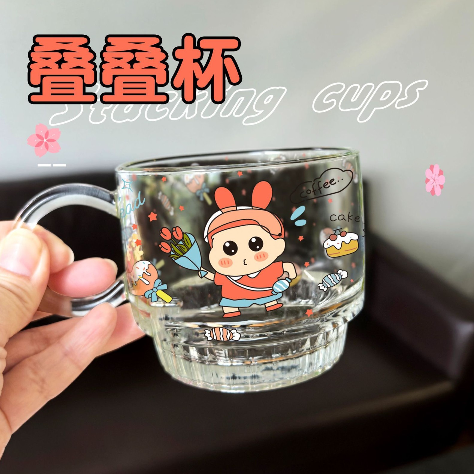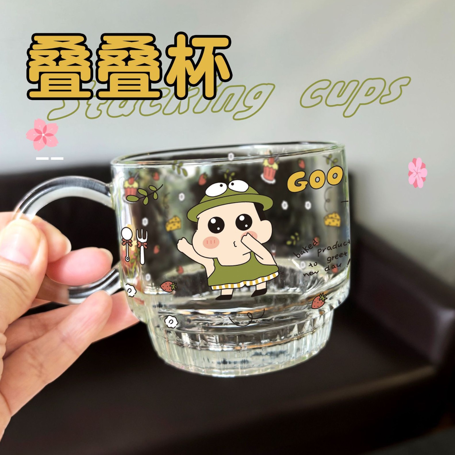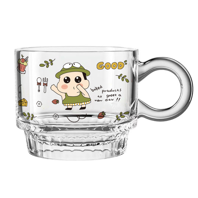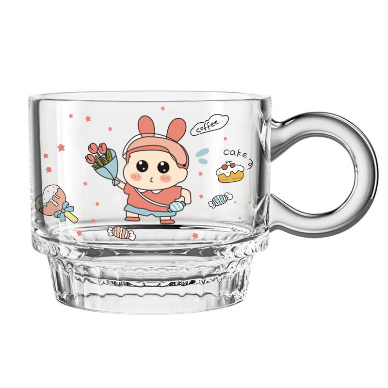ns新款高硼硅玻璃把手印花牛奶杯 可微波家用玻璃水杯卡通玻璃杯