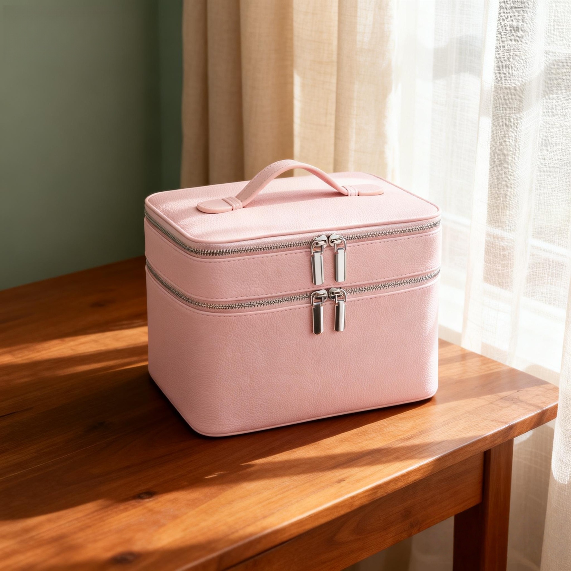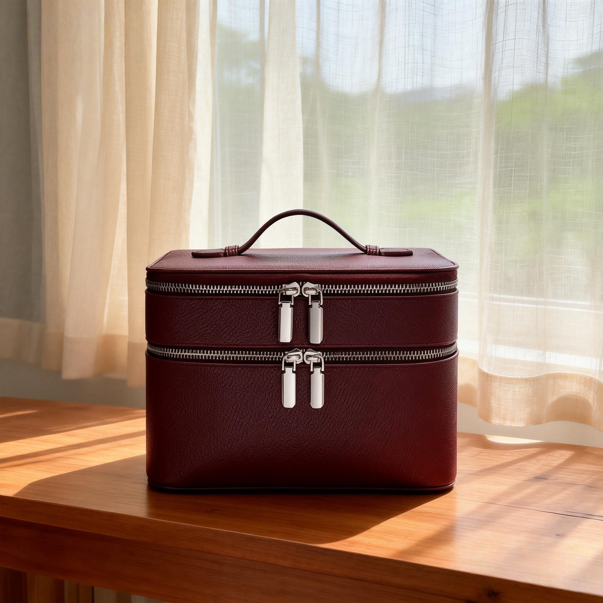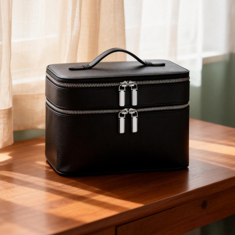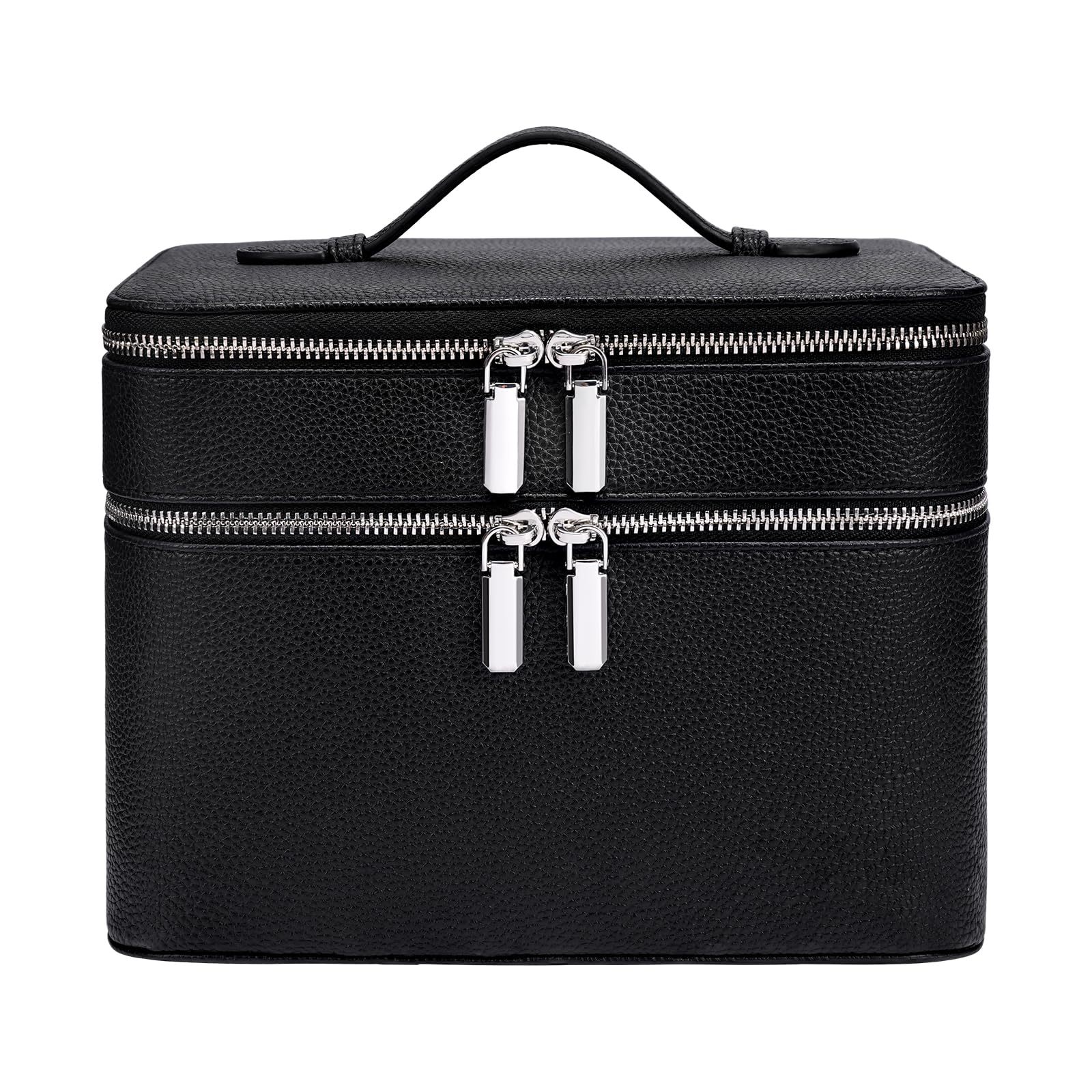 跨境新款双层高端化妆包大容量化妆箱PU皮便捷洗漱包收纳包收纳箱