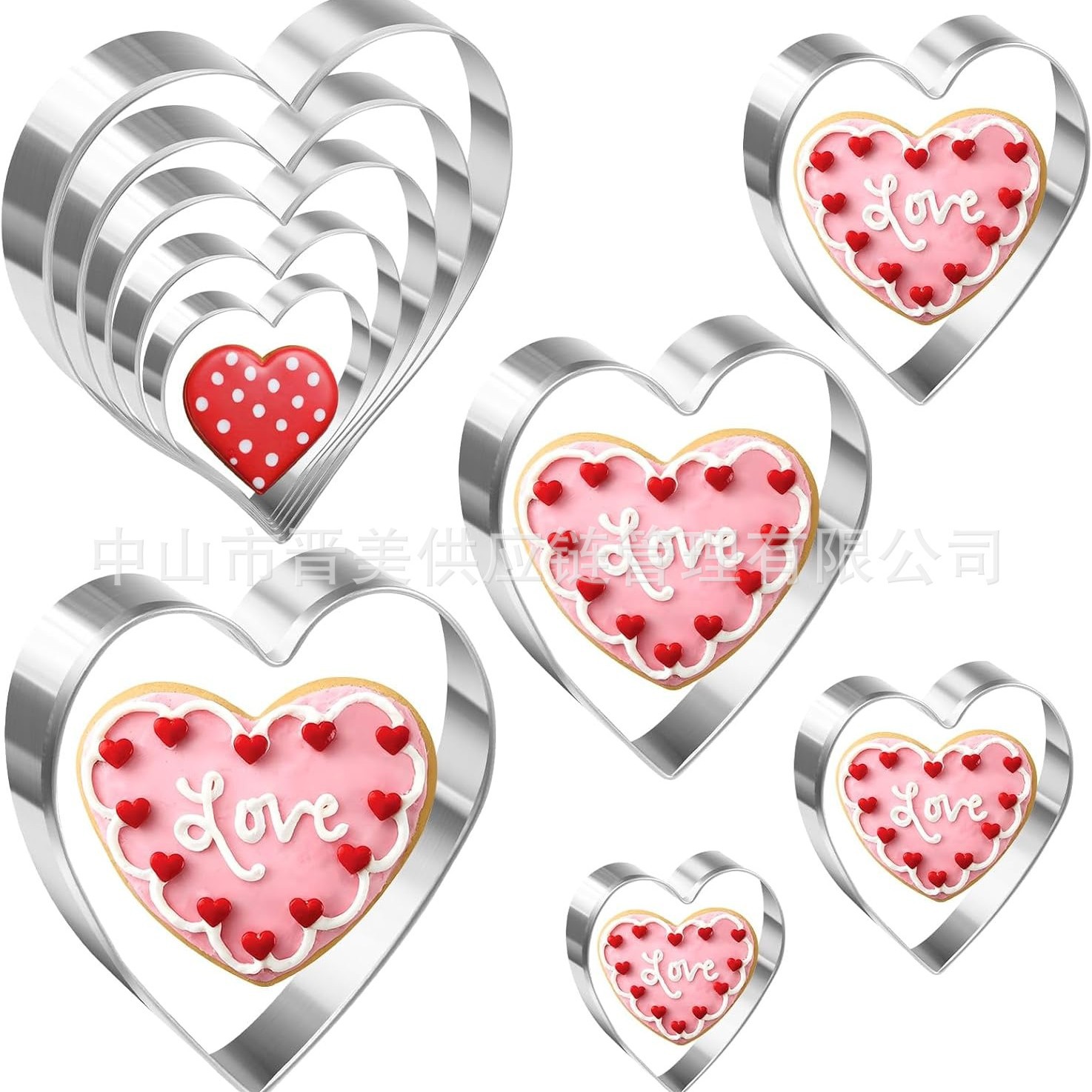 10件心形系列不锈钢饼干模具情人节套装糖霜按压式烘焙工具跨境