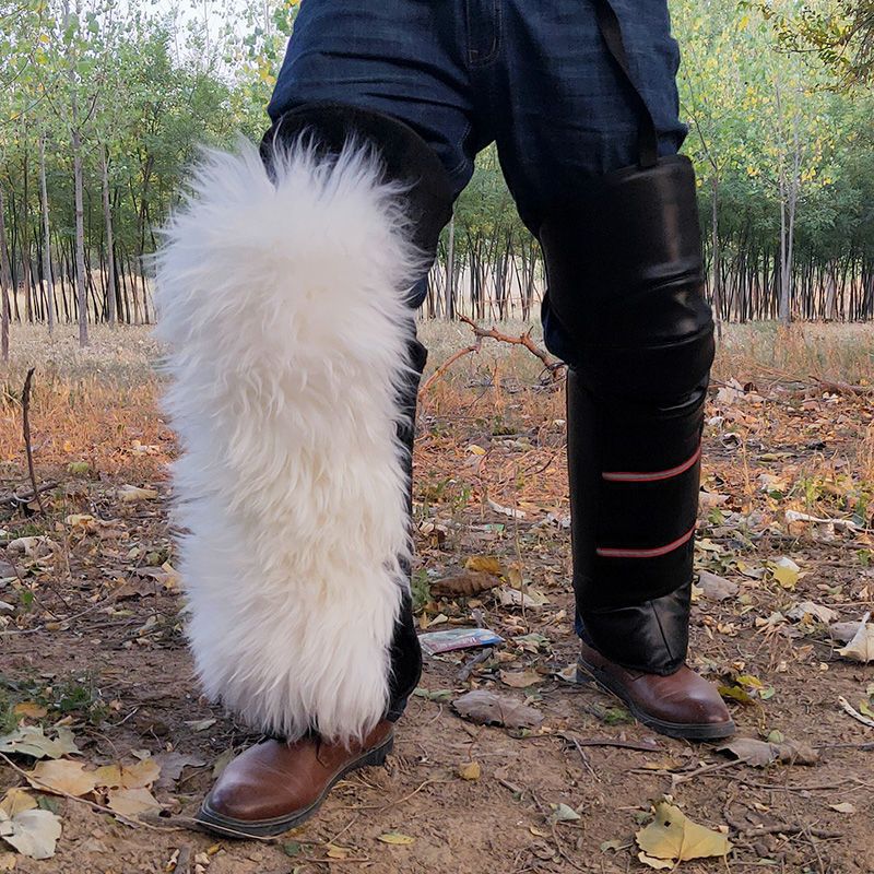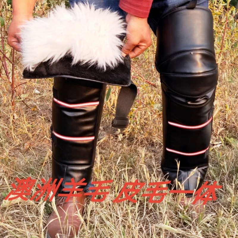 澳洲羊毛皮护膝防寒耐磨加厚骑车护腿外穿挡风防水膝盖冬季保暖