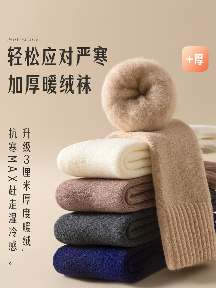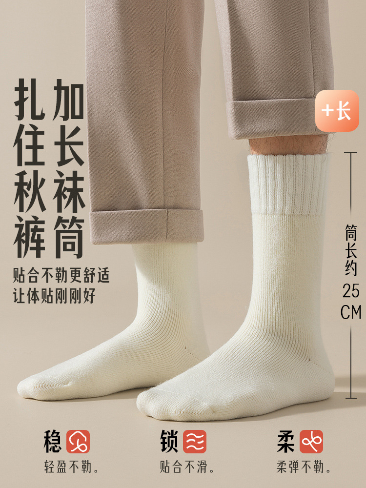 超厚仿羊毛袜子男秋冬加厚加绒长筒毛绒保暖中筒棉袜高筒冬季长袜