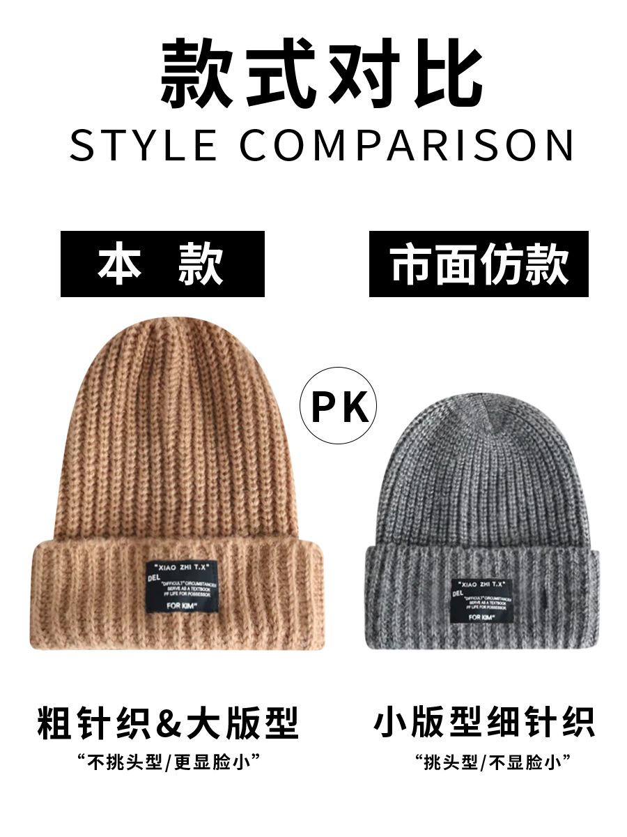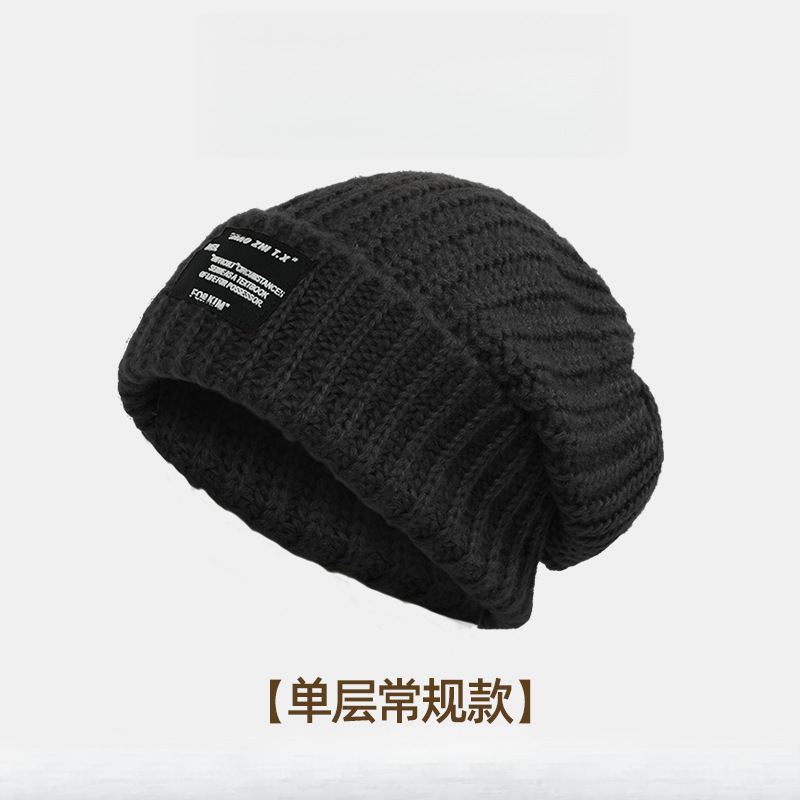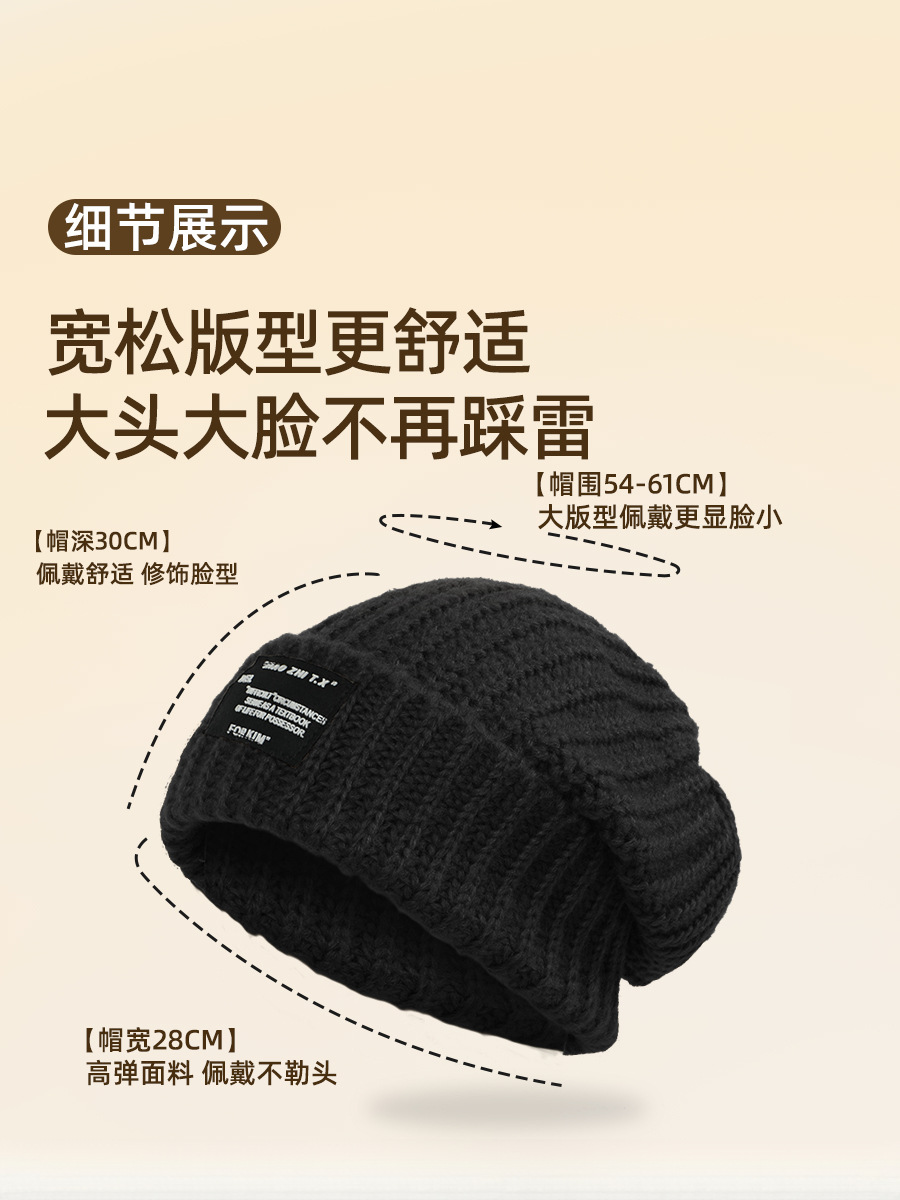 65CM大头围毛线帽男冬季黑色加绒毛线帽大码针织帽粗针织冷帽子女
