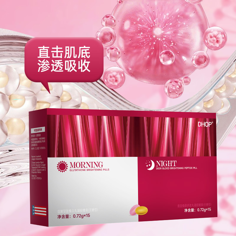 | 包装规格 | 谷胱甘肽丸+鹿血丸 | 包装规格 | 谷胱甘肽丸+三型胶原丸 |