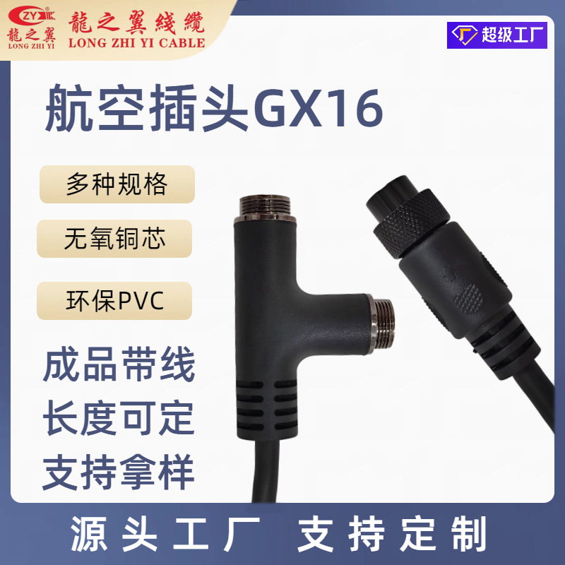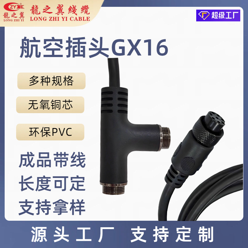 GX16航空插头插座铜镀银IP67防水连接器T 型工业设备接线通用接头