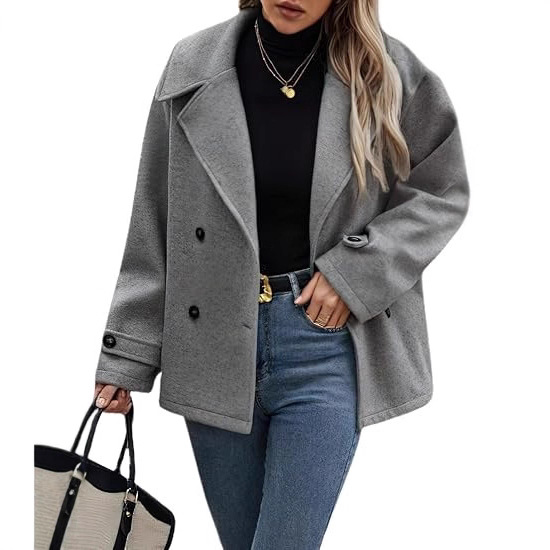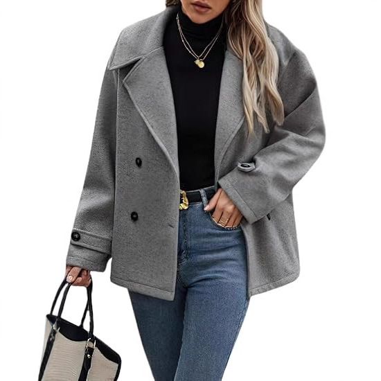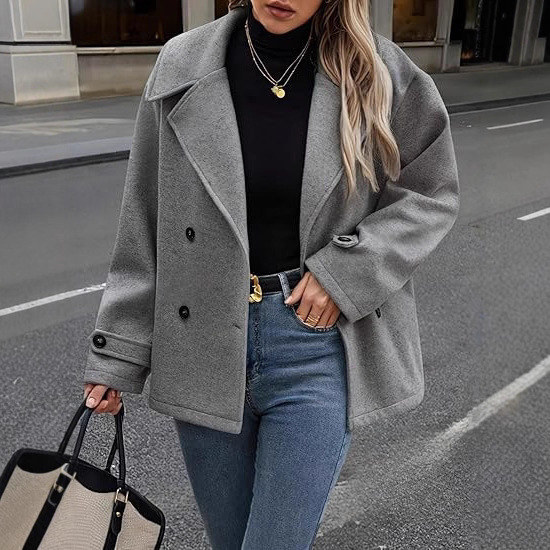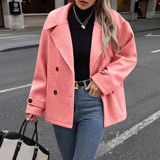欧美外贸女装女士秋冬新款百搭毛呢外套宽松短款西装大衣