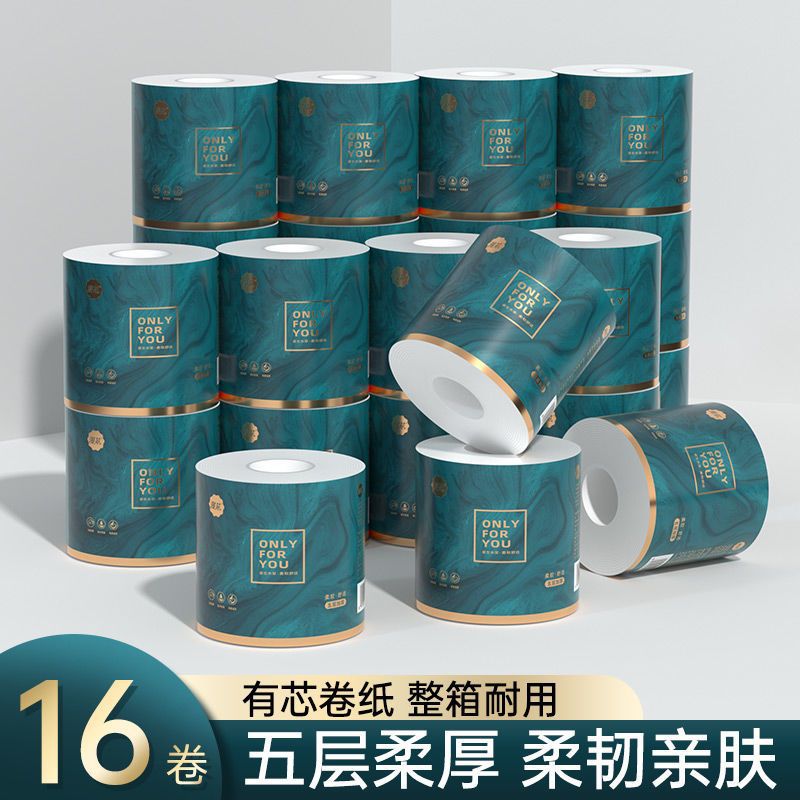 漫花卷纸卫生纸实惠装有芯卷纸批发家用大卷厕所空心原木纸巾整箱