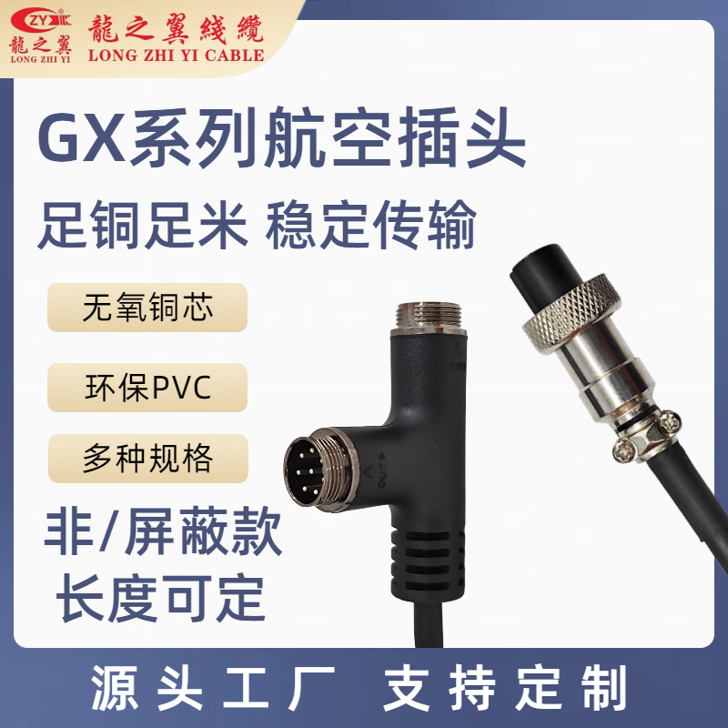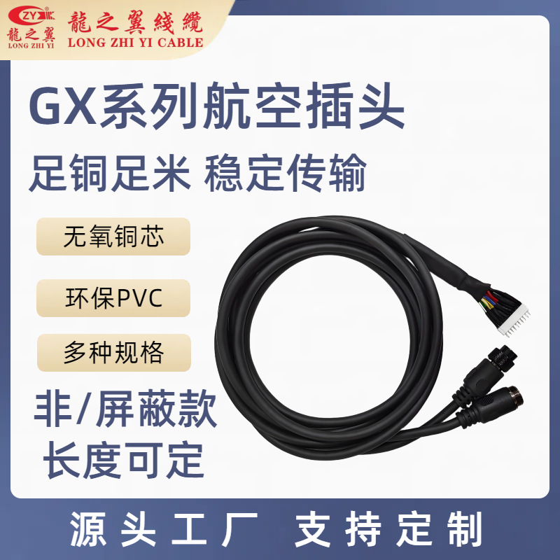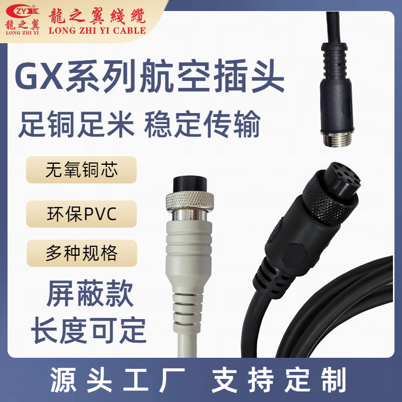 龙之翼GX16-12航空插头带屏蔽车载监控连接器公母插座对接线缆
