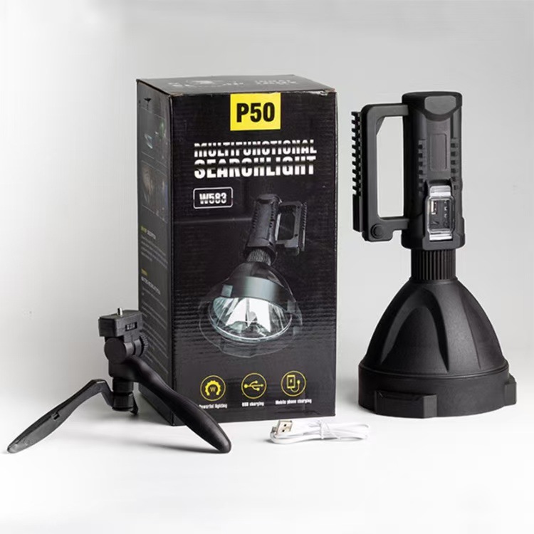 跨境P50强光探照灯USB充电户外防水远射手提灯手电筒多功能照明