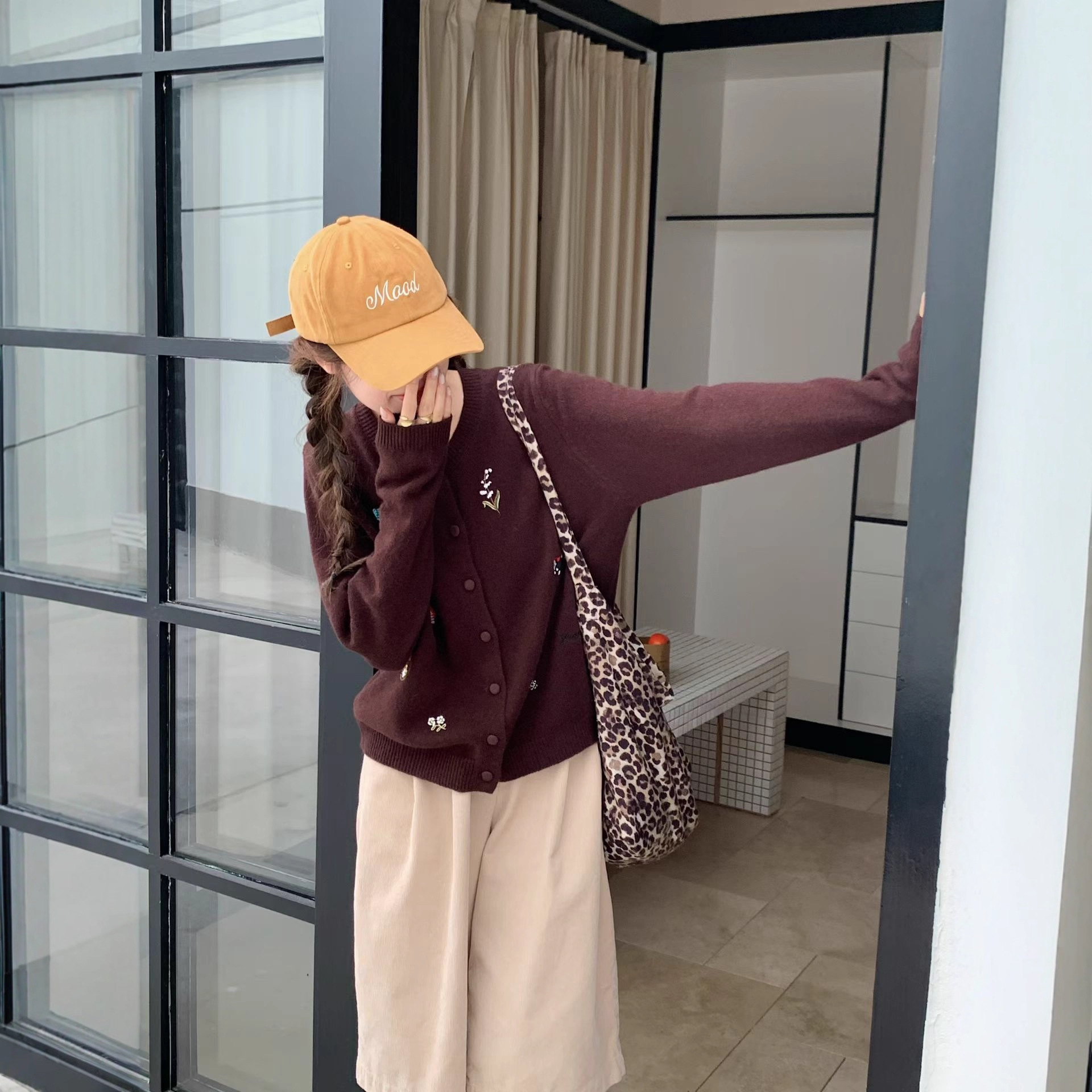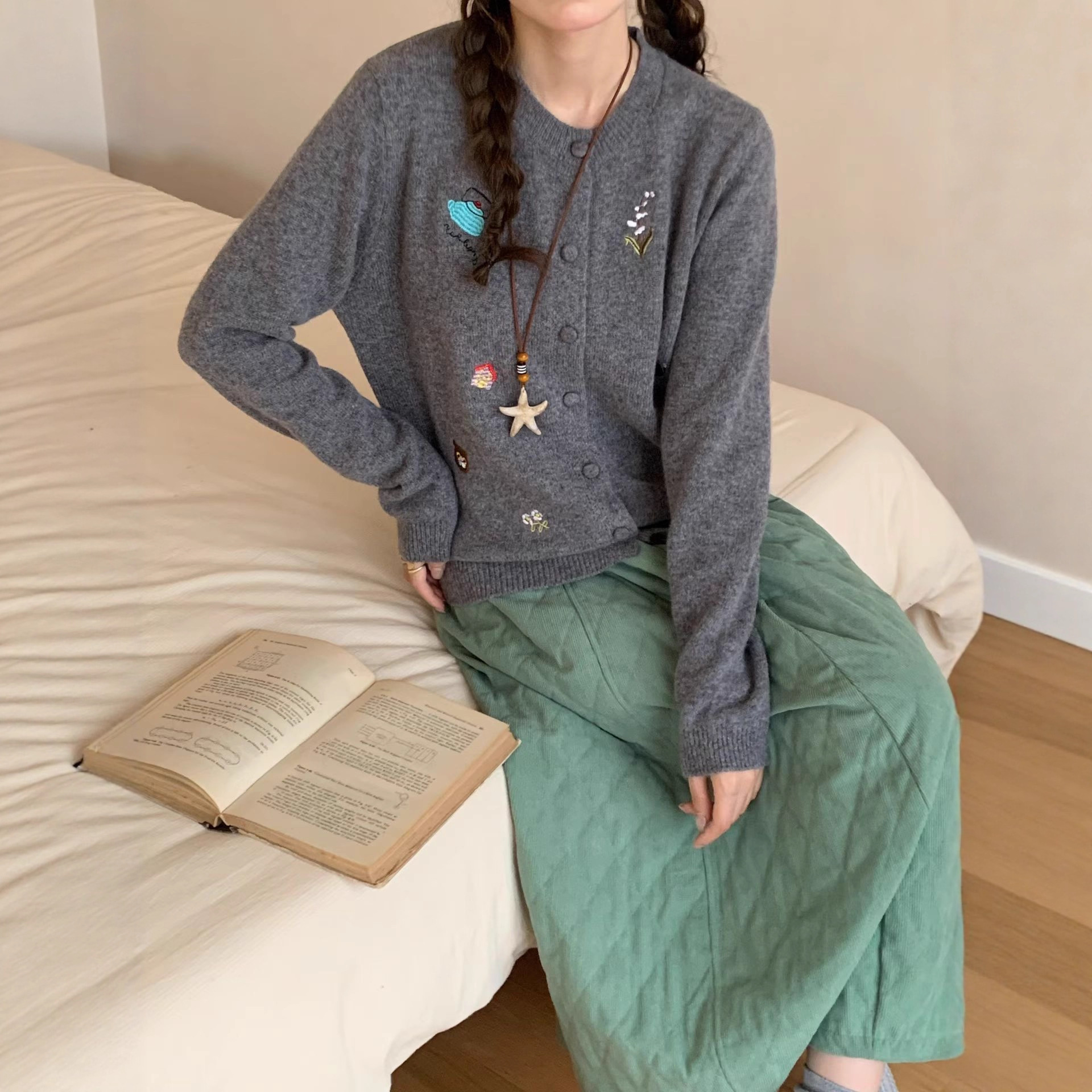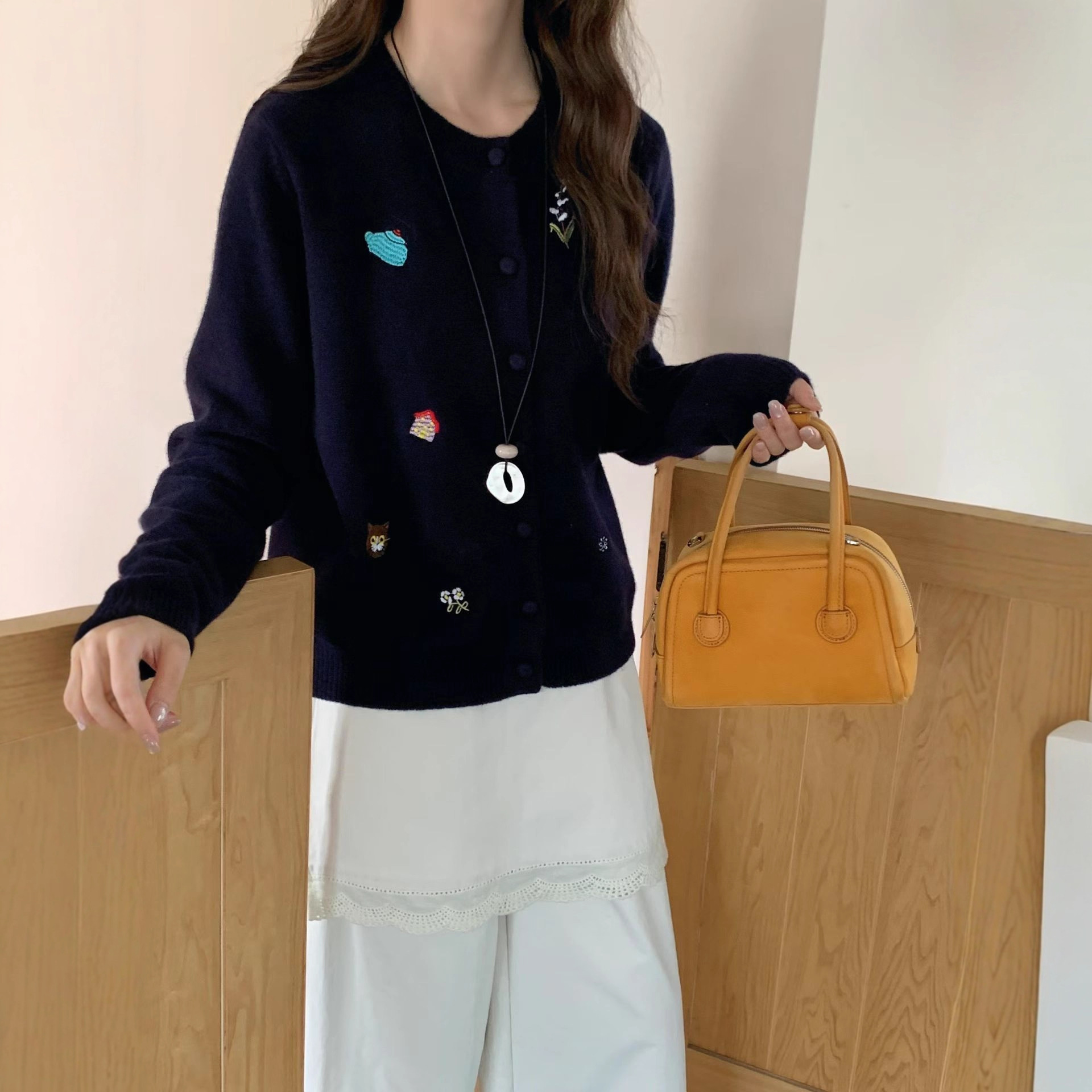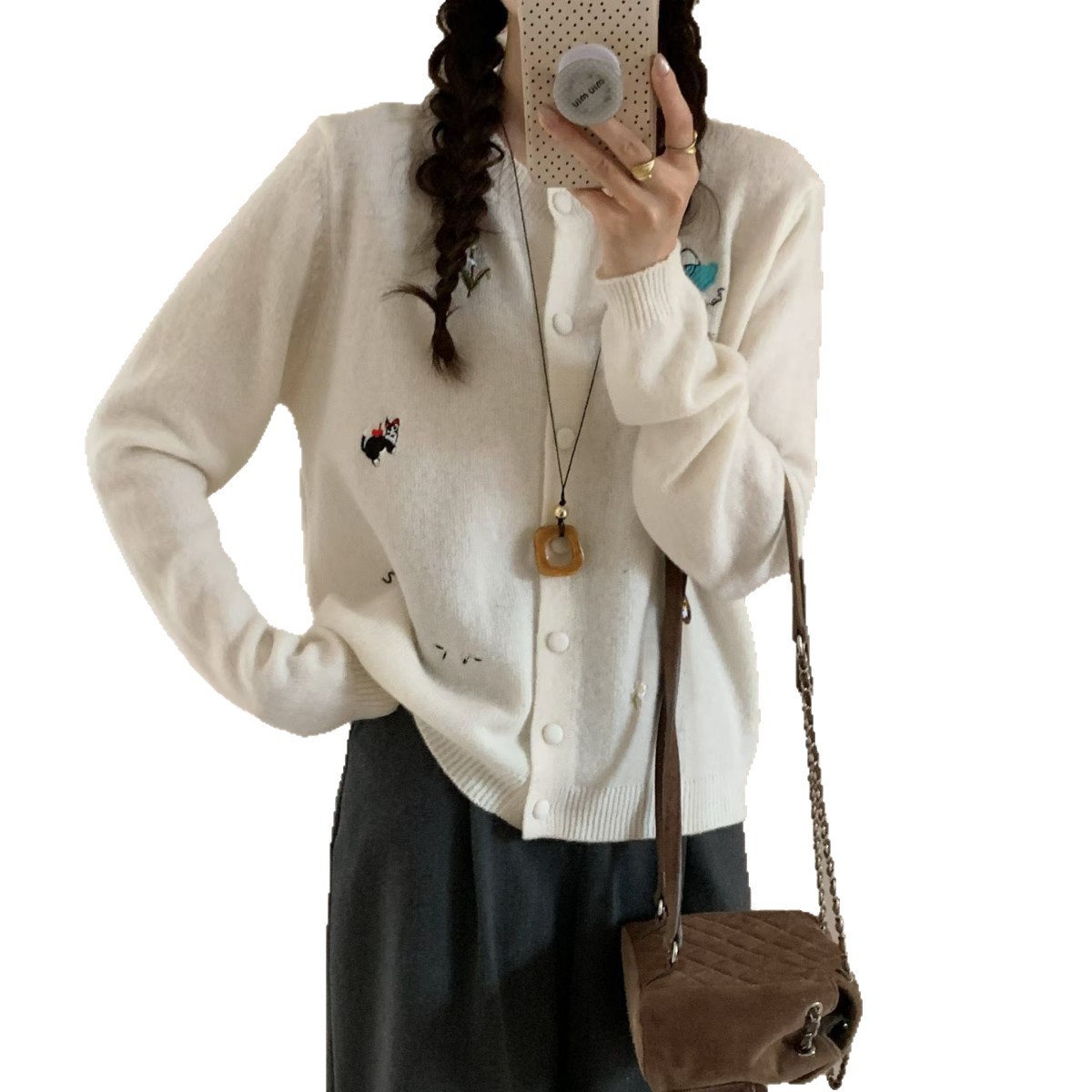 全羊毛开衫针织外套动物图案韩版休闲百搭圆领针织外套重工刺绣女