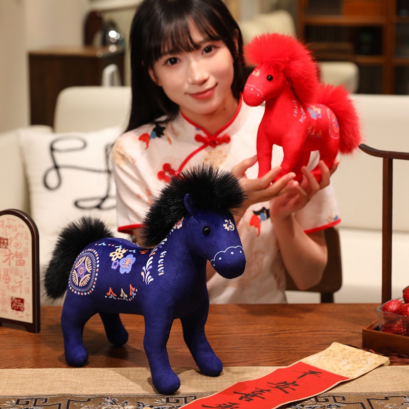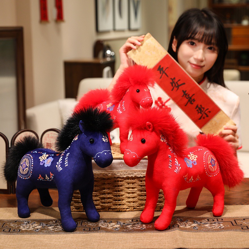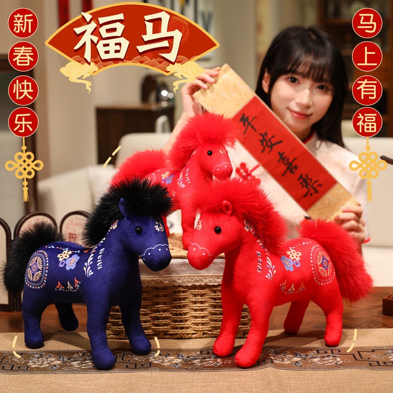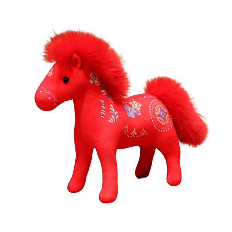马年吉祥物红色印花福马生肖小马喜庆祝福马上成功毛绒公仔可批发