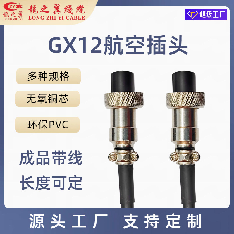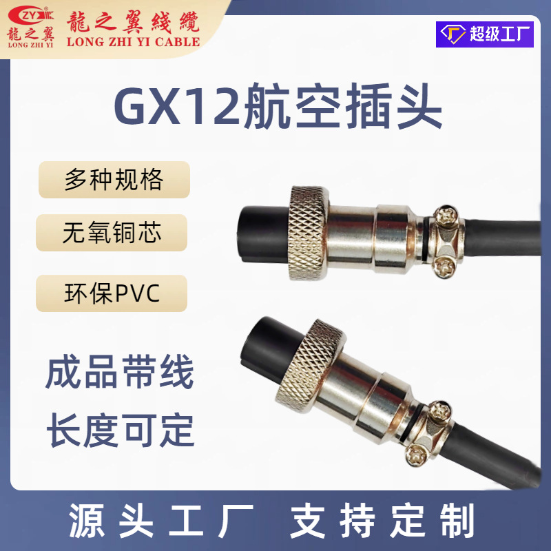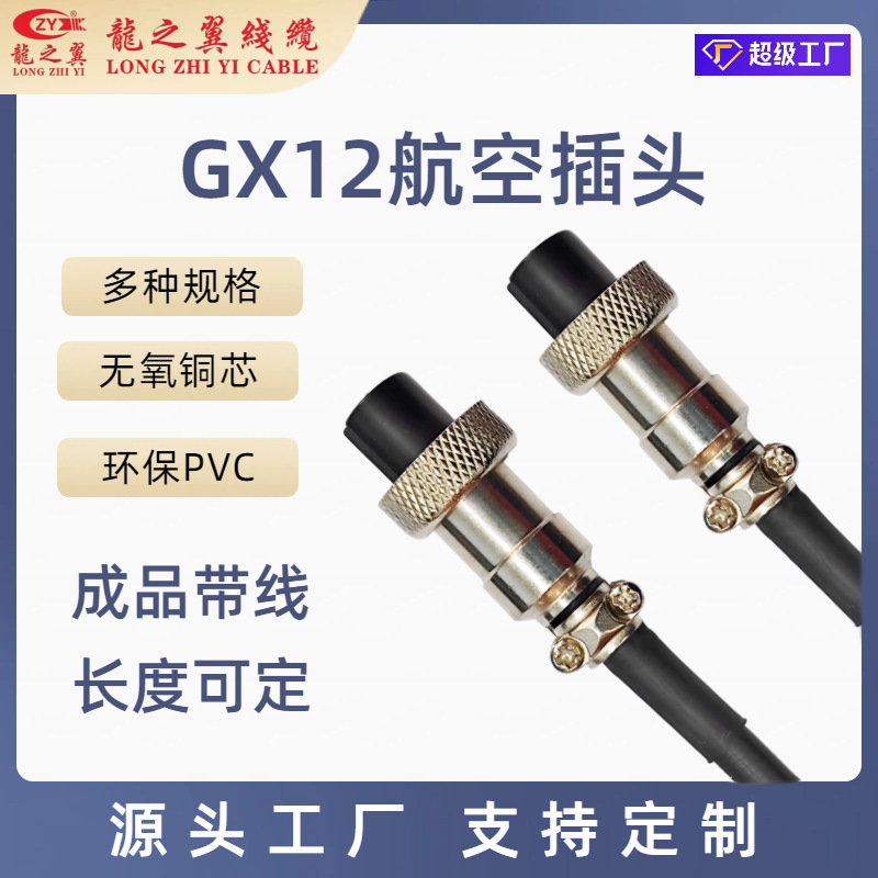 龙之翼GX12航空插头4芯带线舞台灯光功放话筒自动化设备公母插座