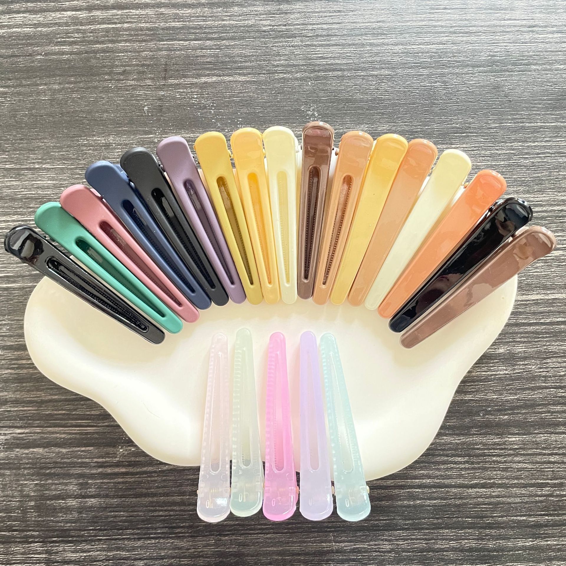 | 颜色 | 11cm亮面钻鸭夹@玫红 | 颜色 | 11#亮实色@米白 |