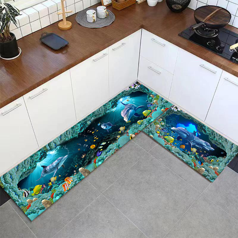 厂家风景花厨房地垫易打理耐脏吸水脚垫餐厅硅藻泥垫防滑软地垫