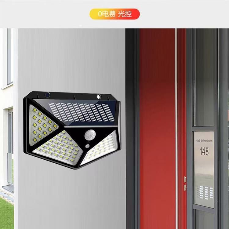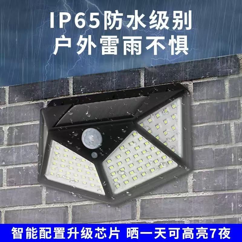 四面发光人体感应灯户外照明现代庭院灯新款100LED太阳能充电壁灯