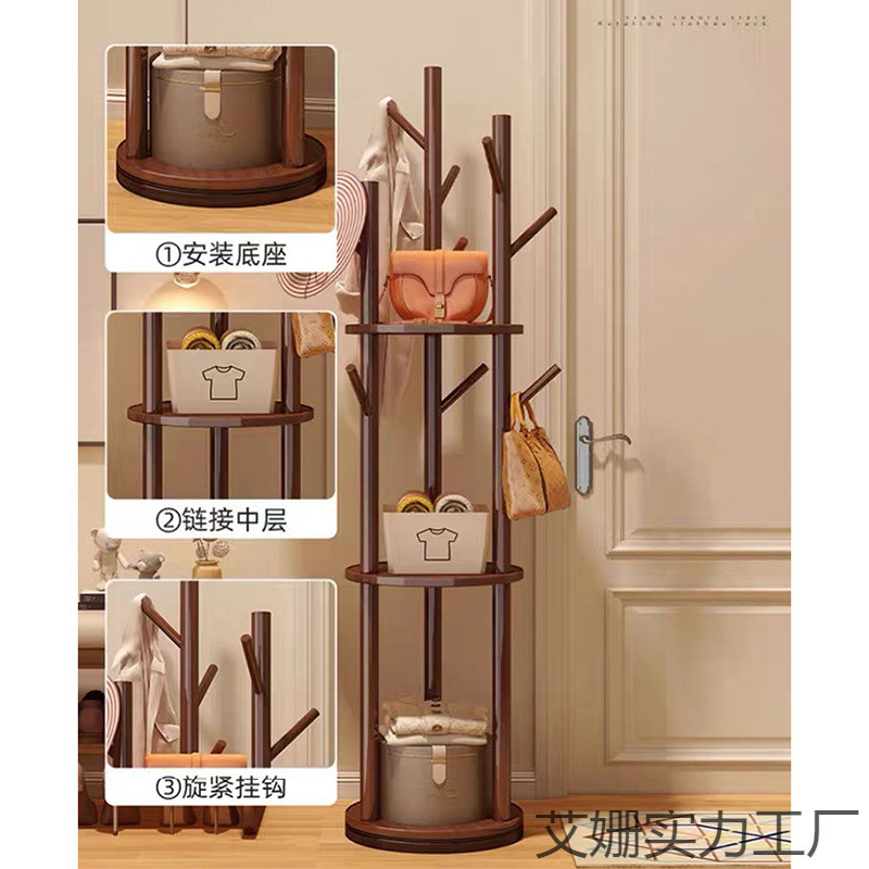旋转衣帽架落地卧室客厅家用转角玄关入户实木简易立式包邮到家