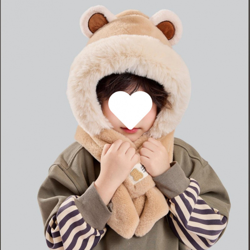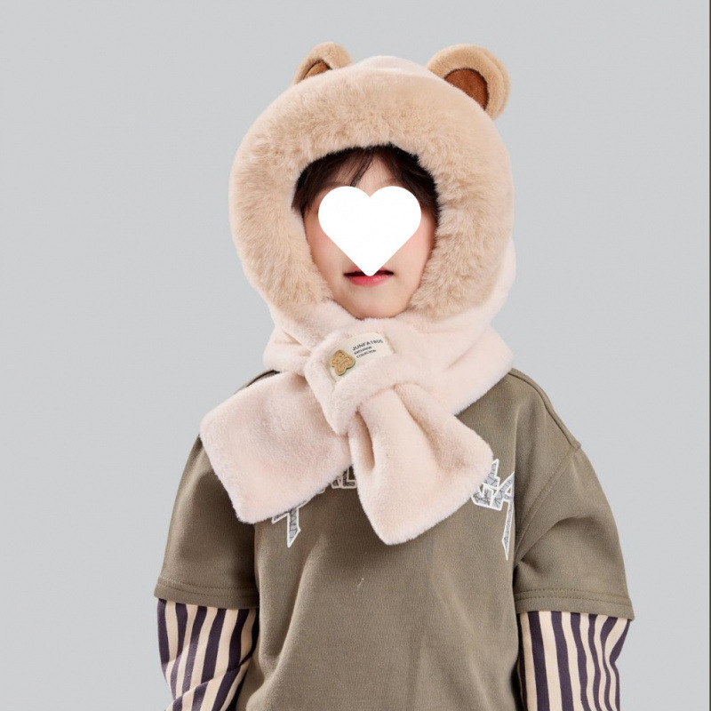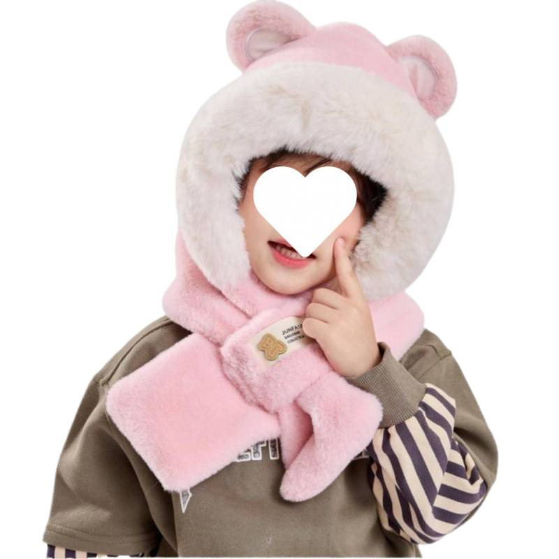 卡通小熊保暖滑雪帽子围巾围脖一体女冬季护耳罩雷锋抖音爆款批发