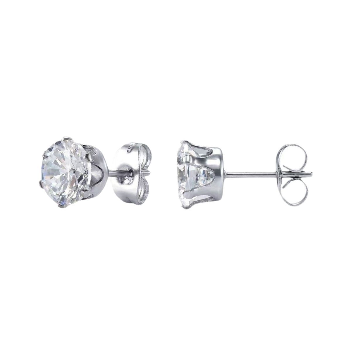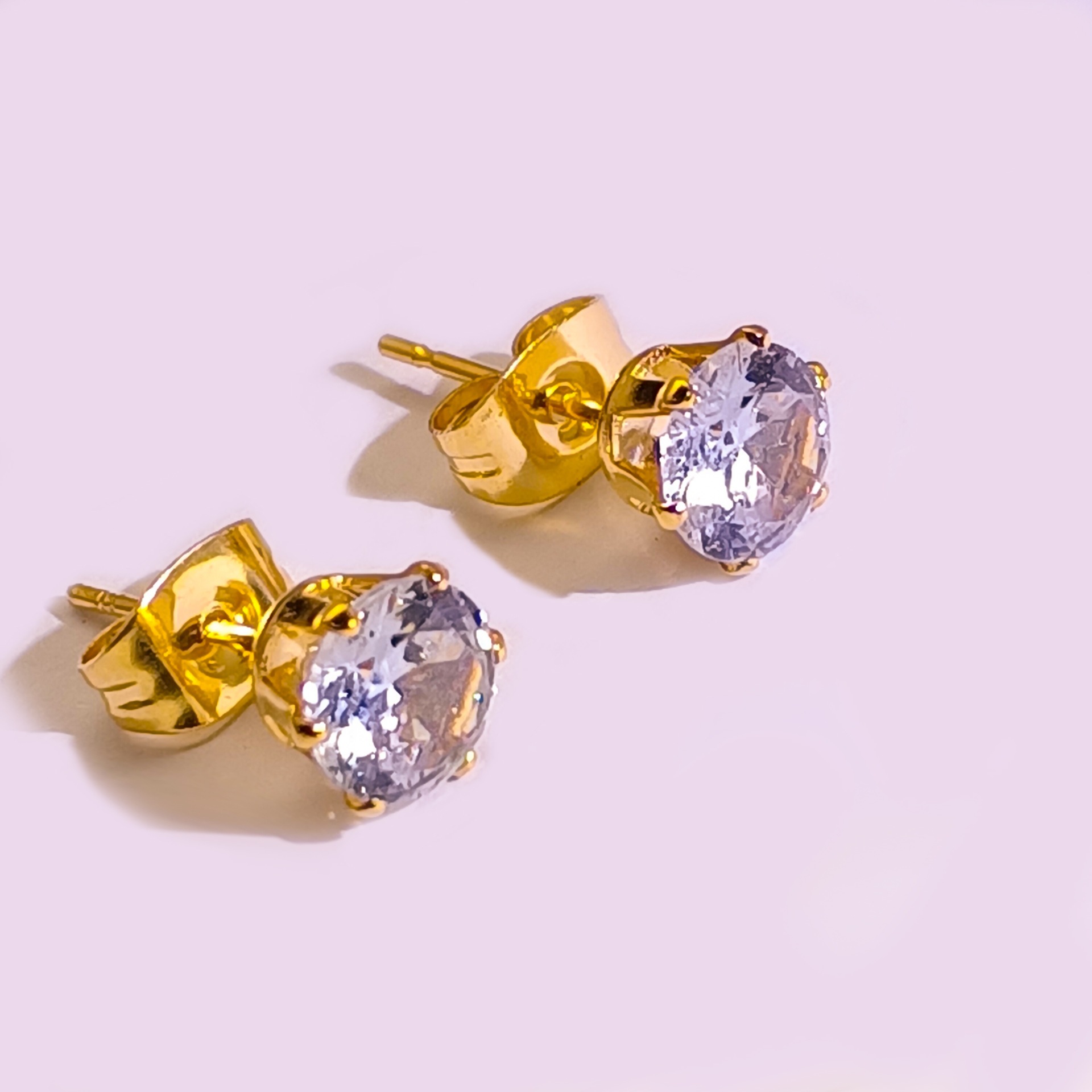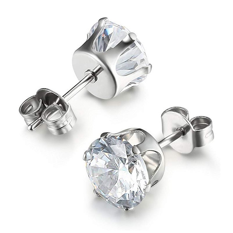 跨境金色百搭设计不锈钢六爪圆形锆石耳钉男女耳饰钛钢耳骨钉
