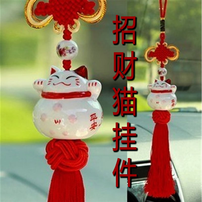 跨境ZGC汽车D招才猫挂件彩色骨瓷陶瓷车挂出入平安挂饰品内饰用品