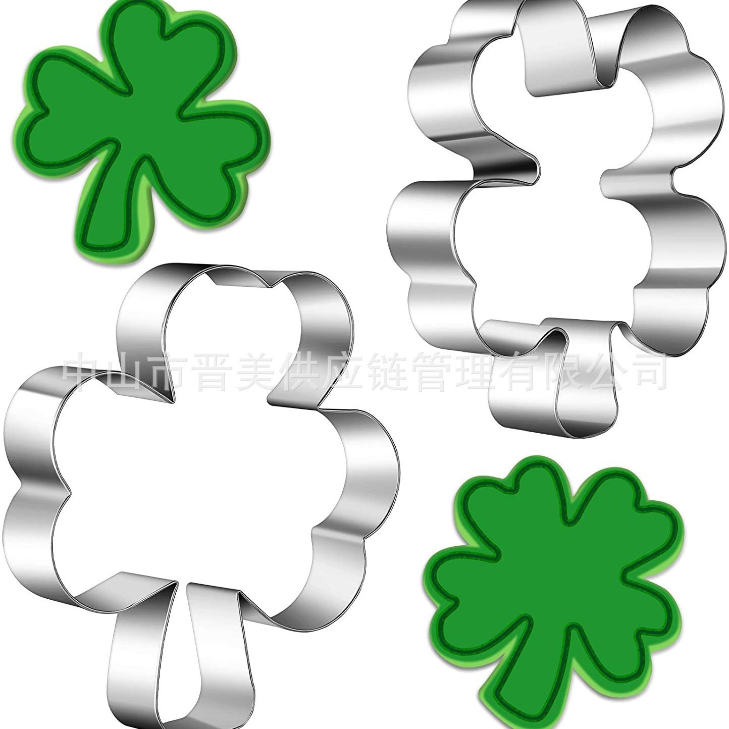 2件三叶草套装不锈钢饼干模具爱尔兰系列四叶草糖霜烘焙工具跨境